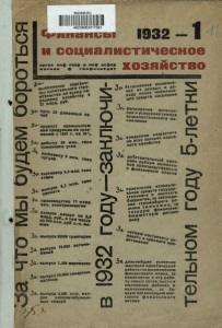 нсоыв.ки 11ИИ11Н1 4623906301709 1932 - 1 и социалистическое ХОЗЯЙСТВО выпуск 1.300 паровозов выпуск 3.081 млн. мет- роз хлопчатобумаж ных тканей производство 11 млрд, нвч. электроэнергии на 940 числе шин кян '₽У^с-х.м а - 21 мпрА- ₽ ’ в - 24 Доменных па . *лн, р °' ной продукции по срав нению с 1931 г. на М°/. 3«^ добычу 90 млн. тонн каменного угля 3^ выплату Э, 5 мпн. тонн стали 3^ 50^3 вагонов ^0* ^^денады В де- мне из А мобилиза- наду плана * имя ции сродс тв Э су расширение источни ков и ускорение темпов социалистического на копления с ' внедрение Х ° ’ Р ц^ред- всех звеньях нарьл 1 Р^ь Г рув„^ н ^ КОНТ- •*ия произволЛ Ь ' ” Оя,¢е • За, выпуск 82000 тракторов , и 13 000 автомо- выпуск «ли билей а ^и^ ОГ ^ "да ние строжайш* и и за ‘ •"'Гпдую финансово- тверДУ~ * дисцип- бюджетную н лину 00 Зл дальнейшее усиление массовой политической работы повыполнению финансового плана, за вовлечение в эту рабо ту новых сотен тысяч и миллионов рабочих и колхозников, за бо евую организацию мас сового финансового актива