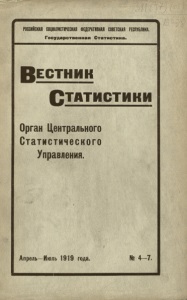 РОССИЙСКАЯ СОЦИАЛИСТИЧЕСКАЯ ФЕДЕРАТИВНАЯ СОВЕТСКАЯ РЕСПУБЛИКА. Государственная Статистика. В естник С1/ 1ТИСТИИИ Орган Центрального Статистического Управления. Апрель — Июль 1919 года.