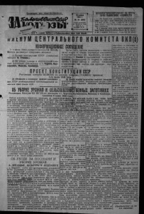 / 'ЗА БОЛЬШЕВИСТСКИЕ КОЛХОЗЫ 12 июня 1936 Г. ОБ УБОКРЕУРЖОАЯИСЕЛСЬКО ХОЗЯЙСТВЕН^XЗАГОТОВКАХ е) установить, что убор ка подсолнуха д о л ж н а быть проведена не более, чем в 20 дней. 10 Пленум ЦК ВКП(б) Предлагав всем директо рам МТС, правлениям кол хозов и директорам совхо вов организовать тшятель ную приемку качества уб ранных полей, стр окай* ший учет и охрану уро жая от расхищения, для чего: а) установить, что ежед н«»но бригадир полевод ческой бригады по акту должен принять убранные (См. начало 1 стр.) Б. ХЛОПОК поля с оценкой качества их уборки. Считать поле уб ранным только после его приемки от бригадира прел седателем колхоза, а в сов хозах—управляющим отде лением или фермой; б) установить обязатель ное взвешивание хлеба у молотилки, на колхозных перевалочных пунктах и о чюлу бункеров и при при емка хлеба в амбаре; в) ответственнсть за сох ранность зерна возложить: на токах по каждой бри’'а де—на бригадира, а по колхозу в целом— на пред сетателя колхоза. ТТредожить Наркомзему СССР, партийным и совет ским организациям хлопко вых районов: а) провести не менее пя ти полных обработок хлоп чатника (культивация, мо тыжение, прополка) и за кончить нх в сроки, уста новленные На р к о м з е мо м СССР; обеспечить по каж дой МТС и совхозу безус ловное выполнение плана тракторных работ по нудь тивацнм; б) используя опыт пере довиков уро>жайности, ши роко применять бороздко вый полив особенно до цве тения и усилить полцв в период цветения и плодо образования; в) подготовить к уборке хлопка колхозный и совхоз н ы й т р а н с п о р т и построить колхозные су шилки для просушки влаж ноги хлопка к 15 сентя бря; г) обеспечить подготовку в колх >зах и совхозах не обходимого количества еле лингов для м а к с и м а л ь ной м е х а н и з а ц и и последнего сбора хлопка (коробочек) с тем, чтобы к 1 декабря закончить полно стью сбор хлопчатника и немедленно развернуть зяб левую вспашку под, уро жай 1937 года. В БОРЬБЕ ЗА КУЛЬТУРНУЮ, ЗАЖИТОЧНУЮ жизиь КОЛХОЗНИКОВ Наш колхоз, им. ФРУН ЗЕ, с успехом и с высоким качеством обработки про вели весенний сев. Сев зерновых мы закон чили в 12 дней и сев всех культур—в 16 дней. Свое временно обработала огоро ды колхозникам. В проведении весенних работ мы вырастили .луч ших стахановцев—ударни ков. Борноволоки: Контаев, Булышев. Дечков и Боро дин давали ежедневно на обработку 6—8 га. Пахарь Кузьмин давал на плуг 1,25 га и сеяльщик Дуд кин давал на диск ежед- вспашке паров перевыпол няются нормы. Вспашку за канчиваем 15 июня. Идёт подготовка к про полке и уборке. Организо вали звенья и закрепили за ними определенные уча стки посевов по берьбе с сорняками. Ежедневно наб людаем за появленнем сор ников и быстро их уничто жаем. Ремонт сеноубороч ных машин и инвентаря закончили и к 12 июля за кончим ремонт хлебоубо рочных машин и гужевой инвентарь. Уборку проведем в сжа тые сроки и без потерь, невно 1,26 га. Сейчас на | соберем урожай в нынеш нем году не менее 15 цент неров с гд. Организовали обучение неграмотных. Все эти работы мы про водим при внедрении ста хановского метода труда. В нашем колхозе 27 хо зяйств, которые получают 34 экземиляра газет н журналов. Шагаем/ вперед в борь бе за 7—8 миллиардов пу дов з-рна. в борьбе за за житочную, радостную и культурную жизнь колхоз ников. Пред, колхоза: СИЗЯКОВ Бригадио: БОРОДИН Локтинский сельсовет tПродолжение в следующем номеое) Л