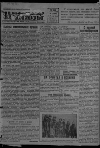 4 За большевистские колхозы Ценные материалы об А. М. Горьком Г о с у д а р с т в е н н ы й л и т е р а т у р н ы й м у з е й п р одолж ает п е р е д а ч у своего го р ь к о в с ко го фонда и н с т и т у т у л и т е р а т у ры им. Л. М. Горького. После с д а ч и и н с т и т у т у д л я г о р ь к о в с ко г о а р х и в а и м у з е я ли ч н ы х р у ко п и с ей и писем А. М. Горького м у з ей п р и с т уп и л к п е р е д а ч е д р у г и х м а тери ало в и различных официальных д о к у м ' н т е в . В числе д ок ум ен то в имеютс я подлинно исто рич ес ки е р е д к о с т и , например, п о х в а л ь ный л и с т , вы д ан в 1878 г. К у н а в и н с к и м начальным сел ь оким у ч и л и щ ем „за о т л и ч ные п р е у с п е в а е м ы е в н а у к а х у с п е х и у ч е н и к у Алексею П е ш к о в у Э т о т „похвальный л и с т " я в л я е т с я одновременно первым из дошедших до нас автогр афов п и с а т е л я : рукой юного Горького на „похваль ном листе*1 сд ел ан ы ш у т о ч ные надписи , свиде т е л ь ст в ую щие о с к еп ти ч е ск ом отношении юношей к этой оценке. (Тасе) Выигрыш в три тысячи рублей ТАТАРОК, 7. (З а п с и б т а с с ) . П р е п о д а в а т е л ь средней школ ы Н арым ско го о к р у г а т. П е ст р я к о в , приехавший в отп у с к в Т а т а р о к , з-го июня п р е д 'я в и л в районную с б е р к а с с у облигацию, на которую п а л выи грыш в 3 ты сячи р у б С б е р к а с с а н а п р а в и л а о б л и г а цию в го с к р е д и т д л я э к с п е р тизы. В 1936 г о д у Пестриков выигр ал 1000 рублей . Сейчас он, к а к то льк о по лучит выиг рыш, собирается к у п и т ь на 600 ру б л ей облигаций, и ост а л ь н ы е и з ра схо дов ать д л я поездки на э к с к у р с и ю в Мое к в у и Ленинград. Стахановский месячник дорожного строительства Президиум Райисполком а вы н ес р мнение провести с 5 июня по 5 июля с т а х а н о в с кий м е с я ч н и к дорожных р а бот. Плохое с ос тояни е дорог в нашем районе у ж е с е й ч а с с л ь н о тормозит движ ение перевозок.Плох ие у ч а с т к и до р о г п р и х о д и т с я часто о б ъ е з ж а т ь по н е с к о л ь к о к и л о м е т ров в с т о р о н у , т е л е г и и а в т о м а шиныприхо 1Игея н е д о г р у ж а т ь полностью в с л е д ст ви и плох и х дорог ча сто пр оисходят поломки и аварии. А в то м а шины ч а сами и днями п р о с т а ивают в т а к и х м е с т а х . Этот огромный ущерб наносимый бездорожьем х о з я й с т в у нашего района еще б о л ь ш е б у д е т о т р а ж а т ь с я в п е р и од х лебосд ачи . План дорожных работ 1937 го д а п р е д у с м а т р и в а е т исполь зование тр уд о во го у ч а с т и я на селения на 350 т ы с я ч р у б лей. При ак тивном у ч а с т и и с е л ь с к л х советов , колхозов и кол хозников, на основе широко р а зв е р н ут о го с о ц и ал и с т и ч е с кого соревнования, у д а р н и ч е с т в а и с т а х а н о в с к и х методов т р у д а имеется полная возможность приведения дорог в хорошее состояние. С ел ь с о в е ты , пр а вл ен и я кол хозов и колхозники должны у д е л я т ь большое внимание м е с я ч н и к у и провести его по с т а х а н о в с к и с тем, чтобы к н а ч а л у уборочных работ, пол ностью пл ан дорожных работ по район у закончить . Костицин За стопроцентное воспроизводство коня Выполнение г о с у д а р с т в е н н о го п л ан а р а з в и т и я кон е во дс тв а з а в и си т в первую о ч е р е д ь от правильного проведения случной камп ании и бережного у х о д а з а жеребыми м а т ками . Партия и п р а в и т е л ь с т в о у д е л я ю т большое внимание с л у ч н о й камп ании , развитию конского по го л о в ья . Однако в р я д е колхозов наше: о район а не понята в а ж н о с т ь случной кам