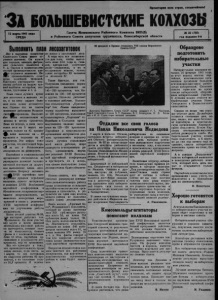 Jft 22 <705) За большевистские колхозы 3 4 Социалистический договор м еж ду Мошковским и Ояшинским районами на 1 9 4 1 год Наша итоги р а б от ы В историческом докладе на XVIII партийном с ъ е з д е тов а рищ Сталин поставил задачу пере д сельским х о з яйст вом: „ Р а з в е р н у т ь да льше под’ем на ше г о з емледелия животноводства с т ем, чтобы в течение ближайших 3 —4 лет добиться еже г о дн о г о производства з е р на 8 миллиардов пудов. П р о д о л ж а т ь да льше у л у ч шение материального и к у л ь турного положения рабочих, крестьян и интеллигенции". партийная конферен- полностью подтвердила достижения Советского Союза в области выполнения з а дач, поставленных 18 парт- с ъе з дом и лично товарищем Сталиным и поставила кон кретные задачи для дальней шего подъема всего народно го хозяйства страны. Решения XVIII Всесоюзной конференции ВКП(б) вооду ше вляют наш народ рождают в нем желание работать еще б о л е е Л ^ и з в о д и т е л ь н о . Реше ния в^Щали новый подъем социалистического с оревнова ния, которые являют ся важ нейшим рычагом в выполне нии плана великих работ. ^ £ х о д я из исторических } 1 ^ Ь н и й т с в Сталина и ре шений 18 й партийной конференции, 5 я сессия Мош ковского районного совета д е п у т а т о в трудящихс я считз ет необходимым включиться в социалистическое соревно вание с Ояшинским районом поставив перед собой следую щие задачи: По полеводству: 1. Провести весенний сев зерновых к у л ь т у р в 6 - 7 рабо- т н х А й и полностью закон читтШев в 8 —10 рабочих дней па основе высокой с т а ханов ской агротехники. 2. Добит ьс я урожайности в 1941 году в среднем с гекта ра зерновых и крупяных 100 пудов, льновол жна —36 пудов, семян люцерны 2 центнера, семян к л е ь е о а —2 центнера, к а р т о ф е л я —200 центнеров, к а пу с т ы—200 центнеров. 3. Д л я обеспечения высоко го урожа я провести в колхо зах следующие а гротехниче ск^|р мероприятия: а) провести сев яровых и озимых культур семенами не ниже 2-го класса, ус т ановленного стандарта. Дл я чего з акончить повторную очистку семян к 15 марта 1941 г. о т бор обра з цов и определение рез ультатов анзлиза коит рольно-семенной лабораторией к 25 марта 1941 года; б) внести в почву с в еже го навоза и перегноя в количе стве 55 тыс. тонн с применением правил агротехники. Полностью использовать для повышения урожайнос ти печную золу, фек а льные у д о б рения, как основные у д о б р е ния; в) выв ез ти со складов с е л ь скохозяйственного снабжения все минеральные удобрения к 20 марта 1941 г. н иолно- с т а Ь их использ овать. 4. Добит ьс я п е ре хода всех колхозов на з в енье вую о р г а - ; низацию труда. К началу в е сеннего сева создать звенья высокого урожа я : по з е р н о вым, колосовым и те хниче ским культурам, овощным, огородным, по картофелю. 5. В 1941 г. открыть 25 хат- лабораторий с полным их оборудованием и в каждом ко л хозе иметь постоянно дейс т вующий к ружок по изучению стахановской агротехники. 6. За в ершит ь ремонт т р а к торов с высоким качеством, к а к по МТС, а т а кже и по совхозам к 15 марта, комбайнов и всех уборочных машин к 10 апреля, отремонтировать весь сельскохозяйственный инвентарь к 15 марта с. г. 7. Провести 100 проц. прополку всех з е рновых культур и де ожат ь в чистом состоя нии от сорняков. 8. За к о нч и т ь у б о р к у всех >ерчо«ых и технических к у л ь тур в установленные прави- гель<твом сроки ирае с чиг а т ь - :я с государством по о б я з а тельным поставкам не