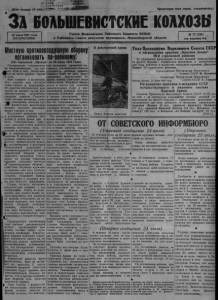 2 За большевистские колхозы № 7 2 (755) С совещания районного партийного актива 25 июля в Доме к у л ь т у р ы с е л а Мошково проходило совещание районного партийного актива. Н а совещании стоял один в оп рос—задачи партийной о р ганизации района в пери од войны. Д о к л а д по этому вопр о с у сделал первый с екре т а р ь райкома ВКП(б) тов. М едв едев . С овещ ание прошло на высоком идейно-политическом у р о в н е . Выступающие коммунисты рассказали о большом производственном подъеме в к о л х о з ах и подвергли резкой к р и т и к е н ед о с та тк и работы партийной организации района в период войны. П рисутс твующ и й на сове-' щании с е к р е т а р ь обкома ВКП(б) тов Соколов в своем выступлении рассказал о пол ож ен и и на фронте и поставил п е р е д партийной организац и е й большие задачи в д е л е улучш ения партийной р а боты. Нужно,-—го ворит он о б ъ я вить беспощадную б о рьбу с беспечностью , повысить р е волюционную бдител ьность, усилить о храну го с у д а р с т в е н ного и колхо зно го имущества, все моби ли зов а ть на то, чтобы п с-боевому включиться в у б о р к у , все подчинить интересам фронта. В заклю чение тов . Соколов выразил у в е р ен н о с т ь , что М ош к о в с к а я партийная о р г а низация с поставленными за дачами справится. По этому вопросу с о в е щ а ние партийного актива вынесло боевое решение, в котором потре бов а ло от секрета рей партийных организаций, от руководителей колхозов, с е л ь с о в е т о в , предприятий и у ч реж дений , от д иректоров МТС и совхозов перестроить всю работу на военный лад. П а р т а к т и в т а к ж е п отребовал о т всех коммунистов принять решительны е меры, к укреплению т рудовой д и с циплины, полностью использ о в а т ь на полевых работах рабочую силу, находящуюся на территории колхозов, с ел ь советов, повести беспощадную борьбу с беспечностью, принять немедленные меры к улучшению охраны государственного и колхозного имущества. Партийные организации всю свою работу должны п е р е строить т а к , чтобы все тр у дящиеся нашего района а к тивно участвовали на полевых работах. Всю работу проводить на основе широкой агитации, положив в основу речь товарища Сталина, произнесенную по радио 3 июля 1941 года. Д е л о чести всех партийных и непартийных бол ьшевиков района выполнить решение совещания партийного актива, с таким расчетом чтобы все сельскохозяйственные работы были сделаны в срок и высо кокач е ств ен но , во время у б р ать у р ож ай , досрочно рас- ч ит ать ся с го сударством и тем самым помочь Красной Армии быстрее разгромить кровавый фашизм. Наладить р а б о т у ГСО Согласно Указа Президиума В ер х о в н о го Совета Союза ClP и решения бюро РК ВКЛ (о ), парторганизация за- го т у ч р е ж д е н и й села М ошково о р ган и зов а л а учебу к о л л е ктива по ГСО. У членов коллектив а е сть б ол ьш ое желание о вл адеть санитарным делом , но плохо то, что руководит ел ь кр уж к а ГСО, п р ек р е п л е н н ая райздра- вом т о в . Н е у с т р о е в а не идет им н ав стречу . Она ни разу на з а н я т и е не явилась. Вместо тов. Неустроевой райздрав послал тов. Семенову. Но и она отнеслась к эт о му д е л у ха л а тн о . Сделав 30 минутную лекцию тов. Семенова не д а л а ни одного от вета на заданные вопросы с луш ат ел ей , та к как к лекции совершенно не подготовилась. Просим РК ВКП(б) обра т и т ь внимание на б е з о т в е т ственное отношение райздрава к порученной ра боте. В и н е в и т 
