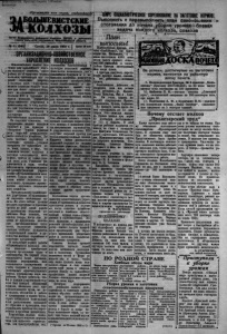 З а б о л ь ш е в и с т с к и е к о л х о з ы 26 июля 1950 г. № 61 (1540) Беседы об Указе Президиума Вехронвгоо Совета СССР от 27 апреля 1950 г. 2 7 аир. я 1 9 5 0 года был и з дан У к а з П р е з и д и у м а В е р х о в но го Совета С С С Р «О присвоен и и з в а н и я Г е р о я Социали сти ч е с ко го Т р у д а и н а граж дении орденами й медалями С С С Р к о л х о з н и к о в , ра ботник ов М Т С и совхозов з а п о л у ч е ни е в ы с о к и х урожаев. Н иж е приводятся у сл ов и я п р и с в о е н и я з в а н и я Г е р о я Соц и а л и с т и ч е с к о г о Т р у д а и на г р а ж д е т я орденами и медалям и С С С Р , у ст а н о в л е н н ы е У к а зом Президиума Верховного Совета С С С Р . З е рн о вы е культуры (кроме риса и к у к у р у зы ) I. З а ч т о п р и с в а и в а е т с я Д а ю щ е й к о л х о з или г р у п п у Комбайн пришел в к о л хо з . . Ч е р е з н еск оль ко днейфхл начнется массовая у б о р к а * " * у р о ж а я . Комбайны у х о д я т с усадьбы МТС в колхо зы . Прибыл комбайн и в колх о з им. Калинина, О р ск о го сел ь с о в ет а . Н о б у д е т ли к омбайнер тов . С и доров убирать этим комбайном •? Сомнительно. Камн е и м е е т п о л о т е н . цепи эв ерта, они р е с таврированы, но так п ло х о , что из-за них с р а з у ж е комбайн выйдет из с тро я , шарнира тука нет. Как ж е комиссия в Сок у рекой МТС принимает комбайны? М. ОВЧИННИКОВА. Дмрочно уплачивают - з в а н и е Г е р о я С о ц и а л и с т и ч е с к о г о Т р у д а Председателям и агрономам колхозов за получение пшеницы, ржи, пшеницы и ржи вместе или зерновых культур в целом (кроме ри са и кукурузы) 22 центнеров с гектара; бригадирам полеводческих бригад колхозов и совхозов— 2 5 центеров; бригадиру тракторной бригады МТС, обслуживающей колхоз или группу колх о з о в , - 22 центнеров; бригадиру тракторной бригады МТС, обслуживающей одну или группу и >лево гчнеких бригад,—25 центнеров; трактористам тракторной бригады МТС и совхозов (на один трактор)—25 центнеров; учаегковым агрономам МТС и райсельхозотделов, участковым механикам М Т С - 21 центнера; управляющим, агрономам, механикам, бригадирам тракторных бригад и трактористам отделений (ферм) совхозов— 23 центнеров. Указом установлено, что такие урожаи должны быть получены со всей площади посе-' ва, но не менее: длл председателей и агрономов колхозов— пшеницы и ржи 200 гектаров, зерновых культур в целом 300 гектаров;* для бригадиров полеводческих бри.ад колхозов и совхоз о в - пшеницы и ржи 80 гектаров, зерновых культур в целом 120 гектаров; д/я бригадира - тракторной бригады МТС, обслуживающей колхоз или групиу колхозов,— пшеницы и ржи 200 гектаров, зерновых культур в целом 300 гектаров; для бригадира тракторной бригады МТС, обслуживающей одну или группу полеводческих бригад,-пшеницы и ржи 120 гектаров, зерновых культур в целом 180 гектаров; для трактористов тракторной бригады МТС и совхозов (на один трактор) - пшеницы и ржи 80 гектаров. Черновых культур в целом 120 гектаров; для участковых агрономов МТС и райсельхозотделов, участковых механиков МТС—пшеницы и ржи 600 гектаров, зерновых культур в целом 900 гектаров; для управляющих, агрономов, механиков, бригадиров тракторных .бригад и трактористов отделений (ферм) совхозов—пшеницы и ржи 300 гектаров, зерновых культур в целом 450 гектаров. 11. З а ч т о н а г р а ж д а ю т ся о р д е н о м Л е н и н а Председатели и агрономы колхозов за получение пшеницы, ржи, пшеницы и рЖи вместе или зерновых культур в целом (кроме риса и кукурузы) 19 центнеров с гектара; б