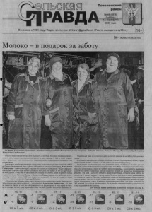 Доволенский район P A R f l A ¡¡¡Г # 4 Щндо шшшт №46 (8878) Суббота 14 НОЯБРЯ 2020 года Основана в 1934 году / Адрес эл. почты: dvlnew1@gmail.com / Газета выходит в субботу 16+ Животноводство Молоко - в подарок за заботу На фото Елизаветы Зубиковой: передовые доярки ООО «Ярковское» (слева направо): Надежда Зайцева, Татьяна Минор, Валентина Суздальцева, Александра Гребенькова. Итоги в животноводстве принято подводить в октябре. Валовое производство молока по всем хозяйствам района составило за весь период 77 889 ц. ООО «Ярковское» продолжает уже несколько лет подряд занимать лидирующие позиции в этом направлении. Результаты хозяйства по надоям нынешнего года превысили прошлогодние на 500 кг. Доярки беспривязной базы побили собственные рекорды. Например, Александра Гребенькова - семитысячница(!), надои в её группе уже превысили 7 002 кг на фуражную корову с начала года. В этой профессии женщина уже более 30 лет и о другой даже и не думает, к тому же, по её словам, это совсем не сложно, когда на работу идешь с удовольствием. Татьяна Минор и Валентина Суздальцева тоже добились отличных результатов - около 6 500 тонн молока на каждую (!). Ничуть не отстает от своих коллег и подменная доярка Надежда Зайцева. - Относиться к коровам нужно как к людям, и поздороваться, и слово ласковое сказать, и внимание уделить каждой, - рассказывает Александра Гребенькова. - К тому же о многом говорит и опыт, за всё проведенное на ферме время я знаю коров не только по кличкам, но и по всем характеристикам: система доения, молочные возможности. Подопечные тоже не остаются в долгу и платят дояркам за их заботу большим молоком. -В среднем на фуражную корову в хозяйстве с начала года надоили 5 222 кг, это самый высокий уровень и почти на 1 500 кг больше среднего по району. Труд доярок на сегодняшний день считается одним из сложных на селе: ранние подъемы, большие физические нагрузки, и хоть он и облегчен в техническом плане доильными установками, но все же требует крепкого здоровья, выносливости, выдержки и, конечно, любви к животным. Как раз всех этих качеств не занимать у ярковских передовиц. Три раза в день они спешат к своим подопечным, оставляя дома заботы по хозяйству. У каждой доярки в группе около 70 голов, сейчас это число уменьшается, но совсем не надолго. Проходит выбраковка старого и малопроизводительного скота, ведь впереди - растел нетелей. Новые животные - новые трудности: раздоить, приучить к своему месту, стаду. А впереди и открытие новой базы, где будет содержаться 360 нетелей. Но и это не пугает доярок. От их улыбок и веселого смеха у окружающих тоже поднимается настроение. (Об итогах года в ярковском хозяйстве читайте на стр. 5.) 15. 11 16. 11 17. 11 18. 11 19. 11 20. 11 21. 11 -W - -2 -5 -9 -7 -9 СВ ^ 3 м/с СВ £ 6 м/с Ю t 5 м/с Ю ф 5 м/с Ю 3 м/с СВ 1^ 2 м/с СВ 1^ 2 м/с