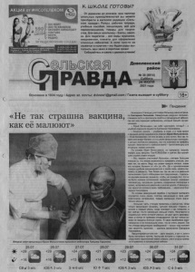 АКЦИЯ от #НСОТЕЛЕКОМ 100 МБИТ 300 ТВ КАНАЛОВ ОНЛАЙН-КИНОТЕАТР YOUTUBE SKYPE РАДИО ЗА ПОДКЛЮЧЕНИЕ СОСЕДА! 590 g j руб/мес • 0 •Подробности акции уточняйте в офисе компании, по адресу; г. Купино, ул. Советов, 95, этож 2, с. Довольное, 2 Г, или по телефону: 8-909-533-35-03 8-800-700-04-96 WWWHCOTEflEKOMPCP 06+) Основана в 1934 году / Адрес эл. почты: dvlnew1@gmail.com / Газета выходит в субботу К Ш КО ЛЕ ГОТОВЫ? От дневника до рюкзака: всю палитру школьных принадлежностей вы можете приобрести в магазине редакции «Сельская правда».* Ранцы, рабочие тетради, учебные пособия, канцелярия, всё для первоклассников, товары для творчества. Для юных школьниц - банты, заколки. Для педагогов - все виды журналов, ежедневники, плакаты для оформления классных кабинетов. А если чего-то не окажется в наличии - мы будем рады выполнить ваш заказ в короткие сроки! Собирайтесь в школу с удовольствием! D Доволенский район РАВДА № 30 (8914) Суббота 24 ИЮЛЯ 2021 года ► Пандемия 26.07 +29 +16 ЮВ 14 3 м/с 27.07 +24 +13 3 -> 6 м/с 28.07 +21 +14 Ю 1s 7 м/с 29.07 ЮВ 14 3 м/с 30.07 +24 +19 ЮЗ 7» 3 м/с 31.07 +24 +17, С Ф 3 м/с На входе в Утянскую участковую больницу меня встречала Екатерина Люлькова. Заведующая радушно поприветствовала гостя и пригласила пройти в процедурный кабинет, где нас уже поджидал доброволец, который пришёл на вакцинацию. - Юрий Витальевич, как себя чувствуете, готовы? - с улыбкой спросила пациента Екатерина Николаевна. - Конечно, колите, - улыбаясь в ответ, и в тоже время с весомой долей серьёзности ответил Юрий Мельниченко. - Я же пониманию, что это не вам, а мне нужно. Вон как тяжело все вокруг болеют, а я в школе физкультуру преподаю, с детьми постоянно нахожусь, так что осознано на прививку пришёл. Безопасность превыше всего! - приготовив руку для инъекции, сказал мужчина. По словам Юрия Витальевича, он прекрасно перенёс первую дозу вакцины Гам-КОВИД-Вак и сейчас без малейшего страха ставит вторую. - Мы, медики участковой больницы, считаем большим плюсом то, что имеем возможность прививать утянцев, скажем так, на месте. Ведь мы знаем каждого жителя, знаем его историю болезни от «А» до «Я». Да и односельчанам гораздо удобнее вакцинироваться в своём селе, нежели выезжать в райцентр. Тем более мы так же как и в районной поликлинике строго соблюдаем все предписания - тщательно изучаем анамнез пациента, чтобы, не приведи Бог, потом не было никаких осложнений, проводим осмотр: измеряем температуру, сатурацию (уровень содержания кислорода в крови), артериальное давление и многое другое. И вакцина у нас хранится согласно всем требованиям, - закончила Екатерина Николаевна. По словам заведующей перебои с поставкой препарата случаются очень редко, поэтому вакцинация в селе идёт практически непрерывно, правда желающих стало значительно меньше. - Большая часть утянцев привилась в райцентре, когда только вакцинация началась, целыми семьями ставили, и многие в первый месяц, когда препарат у нас появился, а вот сейчас что-то желающих меньше стало. Начитаются в социальных сетях историй разных, да друг другу рассказывают, а потом от прививки отказываются. Да вот только совсем не вакцины бояться нужно. Я сама переболела коро- навирусом и не понаслышке знаю, что он очень опасен. Так что считаю вакцинацию необходимой - только она поможет нам защитить организм, - сделала заключение Екатерина Николаевна. Вакцинироваться или нет - дело каждого, а вот я, хотя и была настроена против, послуш