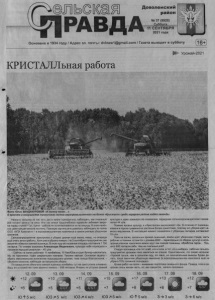 Ш к к ш ш v 1 : ‘ : , “ ч / . : . - ■ Г / ' + Л “ Д . * - ,.. ¿ ? л ч> \ - ' < * • < * ? « » . • * * > Ж * Фото Юлии ВАНДАКУРОВОЙ: «К колосу колос...». О красоте и могуществе пшеничного колоса агропромышленного холдинга «Кристалл» среди аграриев района ходят легенды. Наверно каждому из нас хоть раз в жизни приходилось наблюдать, как пчелиный рой готовит запасы на зиму. Или как семья трудолюбивых Муравьёв забивает закрома перед стужей? Гул, суета - работа не останавливается ни на секунду. В этом нелёгком деле каждая минута на счету. Похожую картину мне довелось наблюдать на полях ООО «АПХ Кристалл» - в агропромышленном комплексе в самом разгаре уборочная кампания. Сельхозпредприятие приступило к уборке урожая ещё месяц назад, но впереди ещё очень много работы. Хотя уже и убрано немало. На 3 сентября в предприятии уже закончен обмолот озимой пшеницы. В этом году её посевная площадь составила 1 150 гектаров. По словам агронома Александра Мединского, культура себя оправдала и показала хороший результат - 40 ц/га. - Сейчас на полях работает 11 комбайнов, 10 КамАЗов и один бункер-накопитель. Мы не торопимся. Идём умеренными темпами. Техники хватает. Основная задача - убрать максимальное количество подошедшего урожая, пока погода благосклонна, - объяснил агроном, наблюдая за процессом уборки. По завершении обмолота озимой пшеницы комбайны тут же приступили к ячменю. Ведь его в хозяйстве тоже засеяно немало - 836 гектаров. Ячмень не уступил озимой культуре и даже превысил её показатели, порадовав сельхозпроизводителей показателем 44 ц/га. Помимо яровых культур, в «Кристалле» выращивают лён. В отличие от пшеницы, ячменя и гороха травянистое растение более прихотливо, поэтому его уборка идёт намного медленнее. В настоящий момент показатели с убранных гектаров составляют 18 ц/га. Пока на полях, засеянных яровой пшеницей, вовсю идёт уборочная страда, часть рабочих и техники готовится к урожаю-2022 - параллельно со сбором культур в агропромышленном комплексе вовсю идут сев озимой пшеницы, обработка паров... Поднято 800 гектаров зяби. Чем не пчелиный рой? Следуя пословице «Не тот хлеб, что в поле, а тот, что в амбаре», рабочие сельхозпредприятия урожаем пока хвалиться не спешат. Единственное, что сказал агроном: «Урожай лучше, чем в прошлом году, это явно, но окончательные выводы будем делать, когда закончим уборочную кампанию (в агропромышленном комплексе ещё не убрано 70% посевной площади)». Кроме работ на полях - внимание подготовке семенного фонда. Правда, пока в закромах лишь малая часть, но, как говорится, начало положено. © Основана в 1934 году / Адрес эл. почты: dvlnew1@gmail.com / Газета выходит в субботу ► Урожай-2021 КРИСТАЛЛьная работа 12. 09 . I . +12 ' 7 ' +6 13. 09 ЮЗ 715 м/с 14. 09 ЮЗ 714 м/с 15. 09 ЮЗ 715 м/с 16. 09 +17 +8 Ю 5 м/с 18. 09 " - J 3 +7 Щ Ц р 3 - ^ 6 м/с Доволенский район РАВДА№ 37(8920) Суббота 11 СЕНТЯБРЯ 2021 года