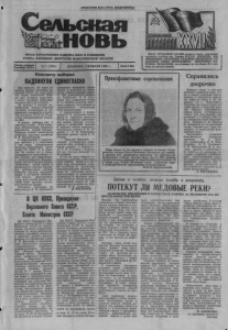 ОРГАН КАРАСУКСКОГО РАЙКОМА КПСС И РАЙОННОГО СОВЕТА НАРОДНЫХ ДЕПУТАТОВ НОВОСИБИРСКОЙ ОБЛАСТИ Газета основана 2 октября 1930 г. Навстречу выборам ВЫДВИНУЛИ ЕДИНОГЛАСНО Как известно, 26 марта со стоятся выборы народных де путатов СССР. Во всех угол ках нашей необъятной Роди ны идет активная подготовка к этому крупному обществен но-политическому событию. 30 декабря в колхозе им. Куйбышева прошли собрания трудовых коллективов по вы движению кандидатов в народ ные депутаты СССР по Татар скому избирательному округу. № 236: В начале рабочего дня в красном уголке РТМ собра лись механизаторы; водители; ремонтники первой бригады. Собрание открыл заместитель, секретаря парткома хозяйства Н. В. Михайловский. С информацией о предстоя щих выборах и о подготовке к ним перед собравшимися выступил заведующий оргот делом РК КПСС О. Е. Каре лин. Он сказал, что в стране складываются качественно но вые условия для эффективно го демократического формиро вания высшего органа власти, обеспечения новой жизни и деятельности Советов. Нынеш няя избирательная система позволяет вовлечь миллионы людей в активный политиче ский процесс, сформировать такой депутатский корпус, ко торый будет достойно отстаи вать интересы народа. Помощник бригадира по механизации В. И. Симоненко В ЦК КПСС, Президиуме Верховного Совета СССР, Совете Министров СССР ЦК КПСС, президиум Вер ховного Совета СССР и Совет Министров СССР по предло жению трудовых коллективов, граждан по месту жительства, местных партийных комитетов и советских органов приняли решение об упразднении имени Л. И. Брежнева в наименова ниях Оскольского электроме таллургического комбината; производственного объедине ния «Южный машинострои тельный завод»; Новороссий ского цементного комбината, колхоза «Вяцаноуэ» Оргеев- ского района Молдавской ССР, Днепропетровского металлур гического института, учебной танковой дивизии, средней школы № 1 города Днепро дзержинска, площадей в горо дах Киеве и Днепропетровске, морского пассажирского судна, стипендий для студентов Мос ковского государственного уни верситета имени М. В. Ломо носова. Восстановлено назва ние Заводского района города Днепродзержинска. Отменено также ранее принятое реше ние в части установки мемори альных памятных досок на Днепровском металлур гическом заводе, на зда нии Днепродзержинского ин дустриального института и на доме № 26 по Кутузовско му проспекту в городе Москве. № 1 (7204) ВТОРНИК, 3 ЯНВАРЯ 1989 г. ФЛАГ ТРУДОВОЙ СЛАВЫ поднят в честь передовых тружениц колхоза им. Ленина БАГАН ЕВДОКИИ ФИ ЛИППОВНЫ, ЛИЛУЕВОИ ТАТЬЯНЫ ИВАНОВНЫ, ТО КАРЕВОЙ АННЫ ЛЕОНТЬЕВНЫ, ШНУРЕНКО МА ТРЕНЫ ИВАНОВНЫ, получивших за год более 30 ц мо лока от каждой коровы. предложил выдвинуть канди датуру в депутаты по Татар скому избирательному округу № 236 председателя колхоза им. Куйбышева Н. И. Дени сенко. Его поддержали шофер В. В. ІПабаев и другие участ ники собрания. Голосование за предложенную кандидатуру было единодушным. С предложением о выдви жении Н. И. Денисенко канди датом в народные депутаты СССР на собрании животново дов первой бригады, состояв шемся в обеденный перерыв в красном уголке комплекса, высказались доярки Р. Н. Ро манюк и Л. И. Подлужная, бригадир дойного гурта Г. А. Попова. — Николай Иванович — умелый руководитель совре менного типа, добрый и отзыв чивый чел