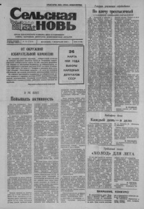 ОРГАН КАРАСУКСКОГО РАЙКОМА КПСС И РАЙОННОГО СОВЕТА НАРОДНЫХ ДЕПУТАТОВ НОВОСИБИРСКОЙ ОБЛАСТИ Говорят участники соревнования По плечу трехтысячный К РАЙОННОМУ СОВЕЩАНИЮ ПЕРЕДОВИКОВ Газета основана 2 октября 1930 г. ОТ ОКРУЖНОЙ ИЗБИРАТЕЛЬНОЙ КОМИССИИ На основании решения окружной избирательной комиссии по выборам народных депутатов СССР по Татарскому террито риальному избирательному округу № 236, окружное предвыбор ное собрание по обсуждению выдвинутых по избирательному ок ругу кандидатур в народные депутаты СССР состоится 14 февра- раля 1989 года в 15 часов в г. Татарске в районном Доме куль туры «Родина». Регистрация начнется с 12 часов на основании лрцглашений, при наличии документов, удостоверяющих личность. На собрание приглашаются выдвинутые по избирательному ок ругу кандидаты в народные депутаты СССР, представители изби рателей делегированные трудовыми коллективами, собраниями избирателей и военнослужащих, работники средств массовой ин формации. Окружная избирательная комиссия. В РК КПСС Повышать активность Как уже сообщалось, бюро райкома партии рассмотрело организаторскую и массово- политическую работу парторга низации Калиновского совхоза в связи с проведением выборов народных депутатов СССР. В принятом постановлении отмечено, что партком совхоза в тесном взаимодействии с сельским Советом народных де путатов, профсоюзной, комсо мольской организациями ведут подготовку к выборам народных депутатов СССР. На заседании парткома утвержден план орга низаторской и массово-полити ческой работы в связи с прове дением выборов, определены конкретные сроки, ответствен ные за исполнение. Для про ведения индивидуальной рабо ты с избирателями по месту жительства утвержден агиткол лектив в количестве 35 чело век, который закреплен за де- сятидворками и улицами сел. Утверждены заведующая клу бом избирателей в селе Кали новка, четыре заведующих агитпунктами в селах совхоза. Во всех селах совхоза кра сочно оформлены календари, клуб избирателей, агитпункты. В них имеются уголки избира телей. С первых дней их дея тельности здесь имеется под борка литературы в помощь агитаторам, заведена тетрадь предложений избирателей, со ставлен план, заведен журнал проводимой работы, подобраны свежие газеты, журналы, офор млены выставки с материалами второй сессии Верховного Со вета СССР. Агитаторы по месту житель ства активно включились в ра боту по пропаганде и разъясне нию принятого Пленумом ЦК КПСС Обращения ЦК КПСС к партии, советскому народу, рас сказывают об осуществлении социальной программы в совхо зе. Немало сделано за прошед ший год в селах: проложен ас фальт 2 км., построено 1,5 км. твердых дорог, проведено осве щение 2,5 км. улиц, построены 2 бани, школа, проведен капи № 16 (7219) ВТОРНИК, 7 ФЕВРАЛЯ 1989 г. Цена 3 коп. тальный ремонт котельной, красных уголков животноводче ских ферм, начато строительст во фельдшерско-акушерских пунктов и др. объектов. В от вет на заботу о людях рабочие совхоза отвечают ударным тру дом. Животноводы успешно за кончили прошедший год, выпол нив и планы трех лет пятилет ки. Работники Дома культуры клубов готовят различные ме роприятия, показ кинофильмов, отражающих историю страны, вопросы воспитания нравствен ности, чествования передовиков производства. В библиотеках оформлены выставки, посвя щенные выборам. В 