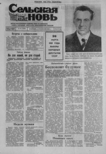 ПРОЛЕТАРИИ ВСЕХ СТРАН, СОЕДИНЯЙТЕСЬ! ИйЬНОВЬ ОРГАН КАРАСУКСКОГО РАЙКОМА КПСС И РАЙОННОГО СОВЕТА НАРОДНЫХ ДЕПУТАТОВ НОВОСИБИРСКОЙ ОБЛАСТИ Газета основана 2 октября 1930 г. Встреча с избирателями 25 февраля состоялась встреча кандидатов в народные депутаты СССР председателя колхоза им. Куйбышева Н. И. Денисенко и первого секрета ря обкома партии В. В. Каза резова с избирателями наше го района. Встреча проходила в Доме культуры железнодо рожников и длилась более трех часов. Кандидаты выступили со Требует решения Ни для новой, ни для старой НЕХВАТКА ТОКАРНЫХ СТАНКОВ СТАВИТ В ТРУДНОЕ ПОЛОЖЕНИЕ СЕЛЬСКИХ МЕХАНИЗАТО РОВ. № 26 (7229) ВТОРНИК, 28 ФЕВРАЛЯ 1989 г. Цена 3 кон. своими политическими плат формами, затем слово было предоставлено доверенным лицам кандидатов. После этого выступили все, кто записался для прений. В заключение встречи были оглашены наказы от из бирателей Карасукского рай она и дан концерт. Подробнее о встрече читайте в ближайшем номере. 26 МАРТА 1989 ГОДА ВЫБОРЫ НАРОДНЫХ ДЕПУТАТОВ СССР Более четверти века отдал труду на железнодорожном тран спорте Виктор Петрович Майборода (на снимке). Он работает машинистом электровоза в локомотивном депо. Центральная РТМ Студе- новского совхоза в прошлом году отметила свое 35-летие. Что и говорить, возраст солидный, соответствует ему и со стояние здания. Падает кры ша, валятся стены, все дер жится на подпорках. Но са мую большую озабоченность у совхозных механизаторов вызывает техническая осна щенность РТМ. Она такая же ветхая и выработанная, как и сама мастерская. Взять токарные станки. Са мый «молодой» из них, поза имствованный у шефов в Но восибирске, 1961 года выпус ка, а остальные и того старее. Не удивительно, что токари больше времени уделяют ремонту своих агрегатов, чем выполнению заказов механиза торов. Да и качество работы страшно детонирующих стап- * Полеводы колхоза им. Ми чурина получили нынешней зимой долгожданный подарок — межколхозная ПМК закон чила строительство в Рождест венке нового ПТО. Помещение просторное, светлое, теплое, прямо душа радуется. Кончи лись наконец-то мучения кол хозных механизаторов, свя занные с зимним ремонтом техники в приспособленных условиях, а то и прямо под от крытым небом на морозе и ветру. Понагнали сразу в ПТО машин, закипела работа. Да только не все пошло гладко. Мешает механизаторам неопе ративное выполнение токар ных работ. Дело в том, что новое оборудование для новой мастерской поступило не в комплекте. В частности, вообще Неделя Первого * марта начнется Всесоюзная неделя музыки для детей и юношества. В му зыкальной школе есть давняя традиция отмечать это собы тие большими и малыми кон цертами в стенах школы; а также в детских садах, обще образовательных школах, на предприятиях города, в селах района. Учащиеся детской му зыкальной школы выступают с лекциями и беседами о музы кальном искусстве. В этом году неделя музыки открылась концертом учащих ся, в котором приняли участие ков, мягко выражаясь, невы сокое. Куда только ни обращались совхозные специалисты с про сьбой о выделении хотя бы одного нового токарного стан ка. Но везде один ответ: новое оборудование выдается только новым мастерским,- так что ждите, когда у вас построят. Но когда это еще .будет! А по ка приходится ремонтникам работать в РТМ — развалюхе на ветхом, давно износившем ся оборудов