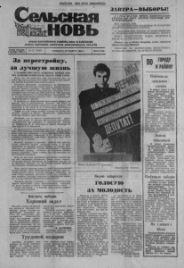 ПРОЛЕТАРИИ ВСЕХ СТРАН, СОЕДИНЯЙТЕСЬ! ЗАВТРА - ВЫБОРЫ! і о Г т .НОВЬ С 7 УТРА ДО 8 ЧАС. ВЕЧЕРА ИЗБИРАТЕЛЬНЫЕ УЧАСТКИ ВАС ЖДУТ, ДОРОГИЕ ТОВАРИЩИ! ДОБ РО ПОЖАЛОВАТЬ! ВАМ РЕШАТЬ, КТО — ДЕНИСЕНКО ИЛИ КАЗАРЕЗОВ ОТ ТАТАРСКО ГО ТЕРРИТОРИАЛЬНОГО ОКРУГА; — ДЕМАКОВ ИЛИ КОПТЮГ ОТ НОВОСИБИРСКО ГО НАЦИОНАЛЬНО-ТЕРРИТОРИАЛЬНОГО ОКРУГА. БУДУТ ПРЕДСТАВЛЯТЬ НАШИ ИНТЕРЕСЫ В ВЫСШЕМ ОРГАНЕ ВЛАСТИ. ОРГАН КАРАСУКСКОГО РАЙКОМА КПСС И РАЙОННОГО СОВЕТА НАРОДНЫХ ДЕПУТАТОВ НОВОСИБИРСКОЙ ОБЛАСТИ Помните, что в каждом бюллетене нужно зачеркнуть обязательно одну фамилию. Газета основана 2 октября 1930 г. № 37 (7240) СУББОТА, 25 МАРТА 1989 г. Цена 3 коп, ГОЛОСУЕМ ЗА ДЕМОКРАТИЮ, ПЕРЕСТРОЙКУ, ЗА ВЛАСТЬ СОВЕТОВ, ЗА ЛУЧШУЮ ЖИЗНЬ! За перестройку ПО гор °А у ш И РАЙОНУ Победители зональною за лучшую жизнь С ТАКИМИ МЫСЛЯМИ, НАВЕРНОЕ, ПОЙДЕТ ЗАВ ТРА КАЖДЫЙ ИЗБИРАТЕЛЬ ОТДАТЬ СВОИ ГОЛОС Перед тем, как выполнить свой гражданский долг, да вайте еще раз вспомним, что нового принесли нам нынеш" ние выборы в высший орган власти страны. Коренных изменений, направленных на демократиза цию нашей политической жизни, свободу волеизъявления, в новом Законе о выборах народных депутатов немало. Прежде всего, появится Съезд народных депутатов СССР, который будет состоять из 2250 депутатов: 750 народных депутатов избираются от общественных организаций, 750 — по территориальным округам и 750 — по национально- территориальным округам. В принципе от общественных организаций выборы уже прошли. Так, на расширенном Пленуме ЦК КПСС от Коммунистической партии Советского Союза избраны 100 депутатов, в том числе И. И. Самоличенко, механизатор, руководитель арендного коллектива из Татарского района. Завтра по всей стране пройдут выборы на основе все общего, прямого и тайного голосования. Карасучанам предстоит выбрать двух депутатов. Напомним, что по нашему территориальному округу 236, куда входят 11 районов юго-западной зоны области, баллотируются два кандидата — председатель колхоза им. Куйбышева Н. И. Денисенко и первый секретарь об кома партии В. В. Казарезов. По национально-территориальному Округу № 21, в сос таве Новосибирской - и Томской областей;, зарегнетрнро' ваны тоже два кандидата — зам. командира Новосибир ского объединенного авиаотряда седатель Сибирского отделения академик В. А. Коптюг. Пожалуй, впервые в практике тельно предстоит сделать реальный выбор — из двух кандидатов по каждому округу выбрать по одному. Кан дидатуры, как известно, широко обсуждались в трудовых коллективах, прошли «обкатку» на окружных предвы борных собраниях. Одним словом, это действительно на ши народные кандидаты. Кому из них стать народными депутатами, решать зав тра вам, уважаемые избиратели. Важно только помнить, что нельзя бросать бюллетень, не вычеркнув хотя бы од ну фамилию. Помните, что бюллетени с двумя фамили ями считаются недействительными. Итак, завтра советские люди на новой демократической основе выберут своих представителей в высший орган го сударственной власти. А затем депутаты соберутся на свой Съезд народных депутатов СССР для решения са мых главных и важных вопросов государственной жизни, в т. ч. и для выборов Верховного Совета СССР 1 Активное участие в выборах — это политическая под держка перестройке, курсу демократизации, гласности, это вклад каждого в борьбу с бюрократизмом и злом. Самых достойных — 