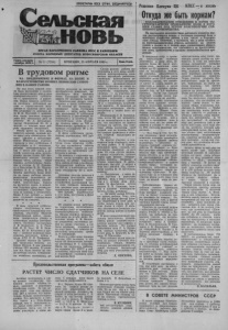 ОРГАН КАРАСУКСКОГО РАЙКОМА КПСС ■ РАЙОННОГО СОВЕТА НАРОДНЫХ ДЕПУТАТОВ НОВОСИБИРСКОЙ ОБЛАСТИ Решения Пленума ЦК КПСС -7 в жизнь Откуда же быть кормам? НАПЛЕВАТЕЛЬСКОЕ ОТНОШЕНИЕ К ПОЧТИ ТЫ СЯЧЕГЕКТАРНОМУ ОРОШАЕМОМУ ПОЛЮ В ХОРО ШЕМ СТАВИТ ПОД УГРОЗУ БЛАГОПОЛУЧИЕ СОВ ХОЗНОГО ПРОИЗВОДСТВА. На мартовском заседании бюро районного комитета пар тии рассматривался вопрос о состоянии кормовой базы в некоторых хозяйствах района, в том числе в Хорошин- ском совхозе. Отмечено, в частности, что в этом хозяйст ве кормопроизводческая отрасль находится на низком уровне и далеко не в полной мере удовлетворяет общест венное животноводство, что сказывается на продуктивно сти скота, производстве и продаже животноводческой про дукции. Газета основана октября 1930 г. В трудовом ритме НА ПРЕДПРИЯТИЯХ И ФЕРМАХ, НА ПОЛЯХ И БЛАГОУСТРОЙСТВЕ ПРОШЕЛ ЛЕНИНСКИЙ СУББОТ НИК В НАШЕМ РАЙОНЕ. Не под стать хмурой пого де было настроение у коллек тива локомотивного депо в день коммунистического субботни ка — приподнятое и радост ное. Перед началом субботни ка состоялся небольшой ми тинг — торжественное всту пление в трудовой ритм дня. Его открывает гл. инженер де по В. Н. Пу.стовой. С праздни ком труда деповчан поздрав ляют зам. начальника депо по ремонту Ю. А. Дорошенко, мастер Морковский Ю. II. и другие, — желают всем доб рого трудового настроения. Объем работ на этот день известен заранее, каждый четко знает свои обязанности. Не мало сделано и заблаговре менно. Ремонтники отремон тировали в счет субботника 2 электровоза и 2 тепловоза, рабочие заготовительных це хов — около 350 узлов и де талей, коллектив цеха эксплу атации сделал более 200 без возмездных поездок. Сегодня выпала честь сделать такие поездки локомотивным брига дам в составе А. М. Нимчен- ко и Красикова В. Ф.. Миоош- ниченко А. А. и Шелъ В. А. Многие деповчане были заня ты на своих рабочих местах, ремонтники занимаются ре монтом оборудования, локомо тивов, комсомольцы вышли на расчистку парка, в недале ком будущем здесь разместит ся комплекс «Здоровье». При шли на помощь и пенсионеры. Более 5 тыс. рублей — таков итог трудового перечисления деповчан на спецсчет. * * * В день «красной субботы» ударно потрудились в авто транспортном предприятии пен сионеры, участники Великой Отечественной войны, произ вели генеральную уборку в стояночных гаражах автотранспорта, Особенно постарались Д. В. Бальченко, А. А. Реуц- кий, И. П. Чаус, И. В. Баль ченко, Ю. М. Копылова и дру гие — сообщил редакции пред седатель ветеранов войны и труда АТП П. И. Трофимов. Дружно вышли на суббот ник труженики колхоза им. Карла Маркса. В нем приняли участие 350 человек. В основ ном все были заняты на сво их рабочих местах. Специалис ты хозяйства занимались ре Продовольственная программа — забота общая РАСТЕТ ЧИСЛО СДАТЧИКОВ НА СЕЛЕ Активно включились в сда чу молока государству тру женики колхоза «Новая се мья», имеющие в подсобных хозяйствах коров. За три ме сяца этого года они продали уже 160 ц молока, что значи тельно больше прошлогоднего уровня. Это результат и того, что нынче в с. Ново-Курья раньше, чем в минувшем го ду, начал свою работу моло- косборщик. Здесь уже 14 че ловек участвуют в сдаче мо № 51 (7254) ВТОРНИК, 25 АПРЕЛЯ 1989 г. ЦежаЗжоп. монтом денников на выпасах, ветобработкой животных, ме ханизаторы вели прибивку влаги. Труженики ферм про извели 68 центн