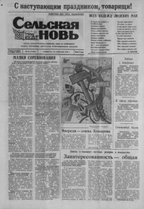 С наступающим праздником, товарищи! ПРОЛЕТАРИИ ВСЕХ СТРАН, СОЕДИНЯЙТЕСЬ! ОРГАН КАРАСУКСКОГО РАЙКОМА КПСС И РАЙОННОГО СОВЕТА НАРОДНЫХ ДЕПУТАТОВ НОВОСИБИРСКОЙ ОБЛАСТИ ВСЕХ НАДЕЖД ЛЮДСКИХ МАЙ Газета основана 2 октября 1930 г. МАЯКИ СОРЕВНОВАНИЯ Об итогах соцсоревнования колхозов, совхозов, предпри ятий и организаций РАПО за 1 квартал 1989 г. Бюро РК КПСС, исполком райсовета народных депу татов, президиум профсоюза работников АПК, бюро райко ма ВЛКСМ признали победи телями социалистического со ревнования: Среди колхозов — колхоз им. Карла Маркса (председа тель т. Морозов Д. А., секре- ' таръ парткома т. Гаврик В. В., председатель профкома т. Пи саренко А. С., секретарь коми тета ВЛКСМ т. Иванчина О. А.). Колхоз выполнил план прода жи молока на 103 проц., уве личив его продажу на 11 проц, по сравнению с соответствую щим периодом прошлого года, 96,3 проц, сдано первым сор том, надоено на фуражную ко рову 636 кг молока. План по мясу выполнен на 106 проц., среднесуточной вес животно го 425 кг, 59 проц, скота сда но высшей упитанности, умень шен падеж скота. Колхозу оставлено перехо дящее Красное знамя, вручен ное ему по итогам 1988 года, он награжден Почетной грамо той и занесен на районную Доску почета. В связи с невыполнением условий социалистического со ревнования, первенства среди совхозов не присуждалось. «Знак качества» по молоку вручен Калачинскому совхозу, сдавшему все 7486 ц его пер вым сортом, по мясу — остав лен в колхозе им. Ленина, врученный по итогам работы за 1988 год. Продано 81 проц, скота высшей упитанности, среднесдаточный вес животно го составил 411 кг/ Среди предприятий загото вительной и перерабатываю щей промышленности — мясо - комбинат (директор т. Ровен ский Л. В., секретарь партор ганизации т. Гребеножка Л. С., председатель профкома т. Ша повалова В. И., секретарь ко митета ВЛКСМ т. Тиль В. X.). Об итогах социалистического соревнования предприятий железнодорожного транспорта, коммунально-бытовых, про изводственно-обслуживающих предприятий за I квартал Бюро Карасукского райко ма КПСС, исполнительный ко митет районного совета народ ных депутатов, президиум рай- профсожа отделения дороги, бюро райкома ВЛКСМ призна ли победителями социалисти ческого соревнования коллек тивы: Карасукской дистанции за щитных лесонасаждений (на чальник т. Кротенко Г. Т„ сек ретарь парторганизации т. Ха- халев Ю. Ю„ председатель профкома Едапина Н. А.), вы полнившей план доходов — на 100 проц., развития подсоб ного хозяйства — 100, произ водительность труда возросла на 1,4 проц. Карасукского озерного ры бозавода (директор т. Горба- тенко А. И., секретарь партор ганизации т. Диденко Н. М„ председатель профкома т. Яко- вченко С. Л.), выполнившего № 53 (7256) СУББОТА, 29 АПРЕЛЯ 1989 г. Предприятие выполнило , план реализации с. учетом по- ' ставок на 100 проц., товарной продукции — на 113,2 проц., производительность труда — на 108,3 проц. Снижена себе стоимость продукции, за квар тал не было рекламаций. Среди предприятий, обслу живающих сельскохозяйствен ное производство. — ремонт но-техническое предприятие (директор т. Никитенко Я. В., секретарь парторганизации т. Куряченко П. Н., председатель профкома т. Тур А. И., секре тарь комитета ВЛКСМ т. Че- бакова Т. Д.). РТП полностью выполнило договорные обязательства, про изводительность труда- — на 140,6 проц., выполнен грузо оборот на 170 проц., грузопе ревозки — на 100 п