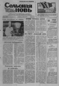 ПРОЛЕТАРИИ ВСЕХ СТРАН. СОЕДИНЯЙТЕСЬ! овь & ОРГАН КАРАСУКСКОГО РАЙКОМА КПСС И РАЙОННОГО СОВЕТА НАРОДНЫХ ДЕПУТАТОВ НОВОСИБИРСКОЙ ОБЛАСТИ д д Газета основана 2 октября 1930 р. № 79 (7282) СУББОТА, 1 ИЮЛЯ 1989 г. Цена 3 коп. Д д=» ФЛАГ ТРУДОВОЙ СЛАВЫ поднят в честь передовой ДОЯРКИ КОЛХОЗА ИМ. КАРЛА МАРКСА ЯЦУН ЛЮ БОВИ АНДРЕЕВНЫ, получающей в эти дни по 15 кг мо лока от каждой коровы своей группы. п Д Д Сегодня — Международный день кооперации Много хороших слов можно услышать в адрес Ирины Мель- хиоровны Геренгер работающей заведующей магазином № 2 «Продукты» в Студеновеком торговом предприятии, где ее ха рактеризуют только с положительной стороны. Фото В. Коробейникова. СЕССИЯ РАЙСОВЕТА 28 июня в Доме Советов со стоялась очередная сессия рай онного Совета народных депу- тотов, на которой был рассмо трен основной вопрос о роли и задачах местных Советов на родных депутатов в формиро вании и развитии духовной культуры населения района. С докладом выступил заме ститель председателя райиспол кома В. И. Филатов, с содокла дом — председатель постоян ной комиссии райсовета по народному образованию и социальному обеспечению Л. М. Ткаченко. В прениях выступили: пред седатель колхоза им. Калини на В. А. Гергерт, доярка Хо- рошинского совхоза Г. Н. Огне ва, работница филиала НЭВЗа Н. И. Штумф, директор ЦБС С. И. Иванова, ветеран культ- просветработы С. Ф. Черны шов, бригадир животноводства Грамотинской фермы совхоза Калиновский Г. Н. Лупашко, бригадир колхоза Карла Мар кса А. И. Никитенко, заслу женный работник культуры РСФСР В. И. Устинов, дирек тор районного дома культуры И. Э. Дуквен, зам. начальника управления культуры облис полкома И. А. Скосырский. за ву" музыкальной школы Г. А. Иванченко, председатель рай исполкома С. В. Кульневнч. На сессии был также заслу шан отчет председателя посто янной комиссии райсовета по торговле, общественному пи танию и бытовому обслужива нию В. Ф. Тура. Сессия приняла решение об освобождении заместителя председателя райисполкома, председателя районной плано вой комиссии Г. М. Русаковой от работы по собственному же ланию. До депутатов доведена ин формация о работе исполкома районного совета за период между восьмой и девятой сес сиями и о выполнении крити ческих замечаний, высказан ных депутатами на восьмой сессии райсовета. По всем рассмотренным во просам приняты решения. Городские депутаты не собрались 29 июня в Доме Советов созывалась очередная сессия городского Совета народных депутатов двадцатого созыва. Важный вопрос выносился на обсуждение депутатов «О ме рах по улучшению благоуст ройства и санитарного состоя ния города, сохранению жило го фонда». Однако сессия не состоялась. И такое уже не в первый раз. Причина одна — не явилось большинство депу татов. Для правомочного реше ния сессии не хватило 4 голо са. Как это называется? Про сто явная безответственность в отношении своих депутат ских обязанностей. И что ха рактерно, в горисполком не по ступило ни одного предупреди тельного звонка от тех, кто не смог по какой-то причине явиться на сессию. Нисколь- •ко не делает чести такое отно шение к сессии и руководите лям предприятий, не обеспечи вших замену депутатов на рабочих местах, их явку на сессию. Сессия городского Совета народных депутатов перенесе на на 11 июля, но не повто рится ли опять такое? Надо бы крепко подумать над след