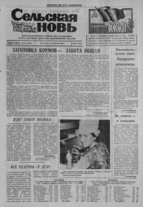 ПРОЛЕТАРИИ ВСЕХ СТРАН, СОЕДИНЯЙТЕСЬ! Сельская ШьНОВЬ ФЛАГ ТРУДОВОЙ СЛАВЫ поднят в честь ТРУЖЕ НИКОВ ДОЙНОГО ГУРТА № 2 колхоза «Новая семья», руководит которым бригадир Л. И. Солощенко. В эти дни они получают более 15 кг молока в сутки от коровы. ОРГАН КАРАСУКСКОГО РАЙКОМА КПСС И РАЙОННОГО СОВЕТА НАРОДНЫХ ДЕПУТАТОВ НОВОСИБИРСКОЙ ОБЛАСТИ Газета основана I октября 1930 г. № 87 (2790) | ЧЕТВЕРГ, 20 ИЮЛЯ 1989 г. Цеаа 3 коп. ЗАГОТОВКА КОРМОВ- ЗАБОТА ОБЩАЯ Сегодня я хочу поделиться с вами положением дел в рай оне в связи с постигшей засухой и одновременно попросить всех активно взяться за решение сложнейшей задачи — заго товки кормов для общественного животноводства и личного подворья. Всем понятна сложившаяся ситуация. Из-за недо статка осенней, весенней влаги выгорели естественные сеноко сы, площадь которых составляет в районе более 60 тысяч га., значительно подгорели сеяные многолетние, однолетние травы. В угнетенном состоянии находятся силосные, зерновые, мас личные культуры. Сильно пострадали от засухи пастбища. Я не намерен драматизировать сложившуюся обстановку, так как мы живем в Кулунде и почти постоянно страдаем от засухи, но в текущем году по сравнению с предыдущими обстановка значительно сложнее. В отдельных хозяйствах — совхоз Калачинский, колхоз им. Ленина — уже сегодня пра ктически негде вести заготовку сена. По оценке специалистов, не смогут заготовить плановое количество сена у себя совхозы «Октябрь», Хорошинский, плодово - ягодный, колхозы им. Мичурина, «Маяк Ильича», возможно и колхоз им. Карла Маркса. В целом по району при плане 605 тыс. центнеров сена, смо жем заготовить 200 — 420 тыс. ц., а около 200 тысяч центнеров нужно заготовить за пределами района. Встает закономерный вопрос: где выход из создавшегося положения? Сложная ситуация требует активизации работы каждого трудового коллектива, высочайшей организации труда на заготовке кормов, используя всевозможные резервы, в том числе включиться в заготовку камыша на болотах и озерах. Каждому городскому коллективу надо выполнить задание по заготовке веточного корма. 15 июля кое-где прошли дожди и появилась возможность дополнительно посеять овес, рапс, про со, другие культуры, чтобы получить сено или зеленый корм. Отдельным хозяйствам, в первую очередь совхозам Хороший, ский, Калачинский, «Октябрь», колхозу им. Ленина нужно без промедления направить отряды на заготовку кормов за преде лами района. Областной комитет партии в помощь десяти пострадавшим от засухи района® закрепил городские районы, в том числе за нашим районом закреплен Дзержинский район г. Новосибирска и перед двумя районами поставлена задача безусловно -выпел, нить план заготовки сена. Мы будем использовать помощь дзер жинцев, но основную задачу должны решать трудовые коллек тивы, в первую очередь колхозов и совхозов. Во вторник в районной газете опубликовано обращение бю ро районного комитета партии, исполкома райсовета ко всем жителям района. Сейчас, как никогда, важна мобилизация кол лективов. активная работа партийных, профсоюзных, комсомо льских организаций, депутатов местных Советов, ветеранов. В недалеком прошлом в 1981 — 1982 засушливых голах, кроме веточного корма горожане активно вели заготовку зеле ной массы, сена в кюветах, нёудобицах и других труднодоступ ных местах и сдавали на сеновалы хозяйств. Особе