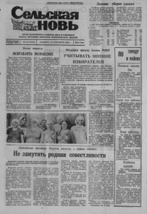 ПРОЛЕТАРИИ ВСЕХ СТРАН. СОЕДИНЯЙТЕСЬ! Дневник уборки урожая Хозяйства района продолжа ют зеленую жатву. К 14 сен тября на период предстоящей зимовки скота заготовлено 498 тысяч центнеров сена (на 50 тысяч меньше прошлогоднего). В эти дни полеводы убира ют сеяные многолетние .и од нолетние травы, косят камыш. Наибольшей суточной прибав ки за среду добились механи заторы совхоза «Российский» и Калиновского, колхозов «Вперед к коммунизму», им. Тельмана, «Маяк Ильича», на- скирдовавшие от 300 до 500 центнеров сена. Сенажа заго товлено 298 тысяч центнеров, ОРГАН КАРАСУКСКОГО РАЙКОМА КПСС И РАЙОННОГО СОВЕТА НАРОДНЫХ ДЕПУТАТОВ НОВОСИБИРСКОЙ ОБЛАСТИ Газета основана 2 октября 1930 г. № 112 (7315) СУББОТА, 16 СЕНТЯБРЯ 1989 г. Цена 3 коп. СВЕДЕНИЯ о ходе заготовки кормов в хозяйствах района на 14 сентября (1 гр. — наскирдовано сена, 2 — заложено сенажа в проц, к плану). «Российский» 104 — им. Куйбышева 83 115 Калиновский 102 «Новая семья» 82 48 Калачинский 99 85 им. Жданова 81 — • им. Мичурина 97 — . ■ им. Карла Маркса 76 — — Плодово-ягодный 96 — Хорошинский 73 61 «Вперед «Октябрь» 72 120 к коммунизму» 94 101 им. Дзержинского 65 198 Студеновский «Маяк Ильича» 86 134 им. Калинина 55 48 85 45 им. Ленина 53 им. Тельмана 84 115 По району 82 79 Мнение читателя ИСПРАВЛЯТЬ ПОЛОЖЕНИЕ Иаш совхоз многонациональ ный. Большая часть жителей сел — русские, немцы, укра инцы, казахи. Много имеется многонациональных семей и в них очень крепки родственные связи. Никаких намеков и раз говоров по поводу межнацио нальной розни не было. У всех общие радости и заботы. Часто беседую с людьми о событиях в Прибалтике, одоб рение они не получают. Люди, особенно пожилые, выступают за то, чтобы сохранить само бытность наций, предлагают образовать автономную респуб лику для немцев. Но хотят это сделать без давления и в це- іях сохранения своей культуры. Высказываются обиды на то, что мало в масштабе района и в селах проводится мас совых национальных праздни ков. Предлагают в районном Музее выделить уголок наций, чтобы сохранить и развивать то, что есть в культуре разных народов. С большой озабоченностью, мне кажется, выступил недав но по телевидению наш прези Нравственные ориентиры: дискуссия закончена, а рубрика остается Не замутить родник совестливости Завершаем разговор, начатый статьей спецкорра Л. Обуховой «Станет ли «маленькая Вера» Наташей Ростовой» и продолжен ной читателями. Напомним сначала коротко ход. 30 мая эта статья была опубликована в районной газе те, ее лейтмотивом было бес покойство автора бурным вли яниям западной массовой куль туры, широко пропагандируе мой в последнее время через видефильмы. Что под их воз действием, по убеждению ав тора, рождаются «маленькие Веры» из нашумевшего филь ма, а отнюдь не Наташи Рос товы. В ответе руководства центра молодежной инициативы, «за нимающегося под эгидой РК ВЛКСМ прокатом видеофиль мов, было высказано несогла сие с выводами статьи. Тогда редакция провела в кабинете политпроса локомо тивного депо, где организована дент и руководитель партии М. С. Горбачев. В выступлении подняты многие вопросы. Пря мой выход главы государства на миллионы людей расцени ваю как верный шаг. Думаю, что во многих во просах упускаем и мы, партий ные работники. Могло бы й не быть забастовок на шахтах и т. д. Допущен сбой в работе всего хозяйственного механиз ма, заводы ослабили выпуск так необходимых н