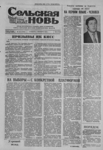 ПРОЛЕТАРИИ ВСЕХ СТРАН. СОЕДИНЯЙТЕСЬ! ОРГАН КАРАСУКСКОГО Р а ИКОМ а КПСС И РАЙОННОГО СОВЕТА НАРОДНЫХ ДЕПУТАТОВ НОВОСИБИРСКОЙ ОБЛАСТИ Интервью кандидата на должность секретаря РК КПСС НА ПЕРВОМ ПЛАНЕ-ЧЕЛОВЕК Газета основана 2 октября 1930 г. ПРИЗЫВЫ ЦК КПСС К 72 И ГОДОВЩИНЕ ВЕЛИКОЙ ОКТЯБРЬСКОЙ ЦИИ. 1. Да здравствует 72-я годовщина Великой Октябрьской социалистической революции! 2. Товарищи! Перестройка — продолжение великого дела Ленина, дела Октября! Боритесь за обновление всех сторон жизни общества с революционной энергией и убежденностью! 3. Вся власть Советам — действенным ор ганам социалистической демократии! 4. Граждане СССР! На предстоящих выбо рах Советов народных депутатов отдадим го лоса подлинным борцам за перестройку! 5. Коммунисты! В обновленном обществе должна действовать обновленная партия! Под готовка ХХѴШ съезда КПСС — это перест ройка работы партии как политического аван гарда общества! 6. Народы СССР! Превратим советскую фе дерацию в дружное, процветающее многонаци ональное государство! 7. Рабочие! Ваш труд, политическая созна тельность и активность — решающие условия успеха перестройки! 8. Крестьяне! Смелее осваивайте прогрес сивные формы хозяйствования! От вас зависит снятие остроты продовольственной проблемы! СОЦИАЛИСТИЧЕСКОЙ РЕВ0ЛЮ- 9. Работники науки и культуры! Народ ждет от вас конструктивной и плодотворной деятель ности! Будьте на высоте своей интеллектуаль ной миссии! 10. Дорогие женщины! Страна как никогда нуждается в вашей творческой энергии, душев ной теплоте и заботе! 11. Советские юноши и девушки! Комсомоль цы! Перестройка — это ваша революция! Ум и энергию молодежи — делу обновления социа лизма! 12. Сердечные поздравления ветеранам пар тии, войны и труда! 13. Советские воины! Помните: перестройке нуйгна надежная безопасность государства! На род надеется на вас! 14. Октябрьский привет и дружеские поже лания народам социалистических стран! 15. Горячо приветствуем коммунистов и де мократические силы всех континентов! 18. Народы Земли! Объединим усилия во имя мира и сохранения нашей планеты для бу дущих поколений! НА ВЫБОРЫ - С КОНКРЕТНОЙ ПЛАТФОРМОЙ Жителям района, как и всей нашей многонациональной республики, предстоит пройти путь политической борьбы по выдвижению и избранию своих посланников в местные органы власти, а также в высший законодательный орган Российской Федерации. Состоявшаяся сессия Верховного Совета РСФСР приняла Закон о выборах и назначила День проведения выборов' — 4 марта 1990 года. В области и в районе начи нается активная подготовка к этой важнейшей политической кампании. Для первичных, рай онной партийной организации в ряду главных вех должна стать платформа, с которой коммунисты выйдут на выборы. Платформа должна представ лять концентрированную прог рамму действий и требований к коммунистам-депутатам. Глав ное, что должно найти отраже ние в платформе, это то, что затрагивает жизненно важные интересы жителей района. В числе важнейших проблем, ко торые предстоит решать и от стаивать коммунистам-депута там, — повышение роли Сове тов, передачи им реальной власти на местах. Все мы с большим нетерпе нием ждем Закона о местном самоуправлении, проект кото рого обсуждается на проходя щей сессии Верховного Совета СССР. Предполагается, что проект этого закона будет опуб ликован для всенарод