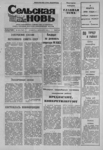 ПРОЛЕТАРИИ ВСЕХ СТРАН, СОЕДИНЯЙТЕСЬ! Сельская овь ОРГАН КАРАСУКСКОГО РАЙКОМА КПСС И РАЙОННОГО СОВЕТА НАРОДНЫХ ДЕНУТАТОВ НОВОСИБИРСКОЙ ОБЛАСТИ Газета основана Я октября 1930 г. № 144 (7347) СУББОТА, 2 ДЕКАБРЯ 1989 г. Цена 3 кин выборам ГЛАВНАЯ ТЕМА МАРТА 1990 ГОДА — выборы народных г ЗАВЕРШЕНИЕ СЕССИИ ВЕРХОВНОГО СОВЕТА СССР Кандидат на должность Москва. (ТАСС). В Кремле 28 ноября завершилась вторая сессия Верховного Совета СССР. В последний день работы де путаты приняли постановление об амнистии совершивших пре ступление бывших военнослу жащих контингента советских войск в Афганистане. Оно вступит в силу с 15 декабря. Президиуму Верховного Сове та СССР поручено в десяти дневный срок утвердить поря док исполнения амнистии. Верховный Совет СССР принял Обращение ко всем на родам, парламентам, прави тельствам, общественным орга низациям зарубежных стран, всем людям доброй воли, где призвал оказывать всемерное содействие в возвращении на родину бывших военнопленных контингента советских войск в Афганистане. Была заслушана информа ция о ходе работы над проек том Закона о социалистиче- ском предприятии. Приняв ее к сведению, депутаты поручи ли Совету Министров СССР совместно с соответствующими парламентскими комитетами и комиссиями подготовить еди ный проект Закона о социали стическом предприятии и пред ставить его на рассмотрение Верховного Совета СССР. Депутаты заслушали доклад заместителя председателя Со вета Министров СССР А. П. Бирюковой о проекте Закона СССР «Об отпусках». Верхов ный Совет СССР одобрил ос новные положения законопро екта в первом чтении, поручил правительству, соответствую щим комитетам и комиссиям доработать его с учетом выска занных замечаний и опублико вать этот документ для всена родного обсуждения. С заключительным словом на сессии выступил первый заместитель Председателя Вер ховного Совета СССР А. И. Лукьянов. Заканчивая сезон Завершается сезон у зерно вых подрядных коллективов совхоза «Октябрь». Механи заторы эвена, возглавляемого А. Шаманским, закончив на днях вывозку планового коли чества перегноя на свои поля — 6 тысяч тонн, без промед ления продолжили транспор тировку соломы к местам зи мовки скота. А звено В. Пер- шова, окончив уборку и вывоз ку соломы, переключилось на вывозку органики. Для этого задействованы четыре мощных «Кировца» — ’ один грузит пе регной мехлопатой, а осталь- ные возят большегрузными автопоездами. Эта работа про должится до конца декабря. Несколько совхозных авто машин занято ежедневно в дальних рейсах, вывозя силос из совхоза «Искра» Черепа- новского района. Всего оттуда предстоит доставить 15 тысяч центнеров сочного корма, ко торого не удалось заготовить дома в достатке из-за сильной засухи, снизившей урожай ку курузы. А. БАРАННИКОВ, гл. агроном совхоза «Ок тябрь». секретаря РК КПСС КРАТКАЯ БИОГРАФИЯ ОМЕЛЬЧЕНКО Владимир Васильевич — председатель исполкома городского Совета народных депутатов, родился в 1949 году в с. Токаревка Ка расукского района Новосибир ской области, украинец. Трудовую деятельность на чал преподавателем восьмилет ней школы в с. Токаревка в 1966 году. С 1967 по 1972 гг. — студент Новосибирского пе дагогического института. С 1972 по 1973 г.г. работа ет организатором внеклассной работы средней школы в с. Ирбизино. Затем с 1973 года работает директором восьми летней школ