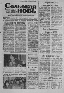 ПРОЛЕТАРИИ ВСЕХ СТРАН, СОЕДИНЯЙТЕСЬ! ОРГАН КАРАСУКСКОГО РАЙКОМА КПСС Н РАЙОННОГО СОВЕТА НАРОДНЫХ ДЕПУТАТОВ НОВОСИБИРСКОЙ ОБЛАСТИ Завершился Съезд народных депутатов Газета основана 9 октября 1930 г. В Советы ~ убежденных борцов за перестройку ВЫДВИНУТЫ ОТ КОМСОМОЛА Второй пленум РК ВЛКСМ, состоявшийся вчера в здании автошколы ДОСААФ, рассмот рел несколько важных вопро сов, главный из них — выдви жение кандидатов в народные депутаты Советов народных депутатов. С информацией по этому во просу выступил второй секре тарь райкома комсомола, член районной избирательной комис сии В. Морозов. Он доложил о том, что некоторых членов ВЛКСМ выдвинули трудовые коллективы. По этому вопросу работала также инициативная группа, ее предложения были рассмотрены на расширенном заседании бюро и поддержаны. Далее он рассказал о положе нии дел с выдвижением у нас в районе, о том, что инициатив ная группа предлагала выдви нуть кандидатом в депутаты РСФСР от комсомола главно го ветврача района В. И. Ка шеварова, но он взгіл самоот вод. Попросил обсудить канди датуру начальника «Новоси- бирскавтодора» А. И. Булгако ва, выдвинутую пленумом РК КПСС, кандидатуру П. Н. Ру- бежанского — от локомотивно го депо, кандидатуру директо ра Садовского совхоза П. Т. Зо лотарева — от Краснозерско- го района, В областной Совет народных № 155 (7358) ЧЕТВЕРГ, 28 ДЕКАБРЯ 1989 г. Цена 3 коп. депутатов предложена канди датура первого секретаря рай кома комсомола С.,Жукова по избирательному округу №173. Затем от имени инициатив ной группы было предложено ряд кандидатур в райсовет и горсовет и началось их обсуж дение. Долго не могли решить ко го же выдвинуть кандидатами в народные депутаты РСФСР. Затем поступило все же пред ложение от В. Коробейникова — П. Н. Рубежанского, от О. Костогладова — А. И. Булга кова. Из присутствующих 27 проголосовало 18 за выдвиже ние начальника локомотивного депо П. Н. Рубежанского, за А. И. Булгакова проголосова ло — 5 членов РК ВЛКСМ. В областной Совет абсолют ным большинством голосов вы двинута кандидатура первого секретаря райкома комсомола С. Жукова. Далее после персонального обсуждения каждой кандидату ры, были выдвинуты кандида тами в народные депутаты рай совета: зам. председателя рай онного комитета народного контроля Г. С. Сидоркин, ре дактор молодежного информа ционно-рекламного вестника, режиссер театра «Смех» А. П. Кобец, второй секретарь рай кома комсомола В. В. Морозов, и обновление общества инструктор РК КПСС С. Н. Речицкий, секретарь партбюро колхоза им. Тельмана В. Э. Лель, электромонтер КЭС В. К. Мыльников, инструктор ИДИ милиции на транспорте В. М. Фоменко, директор гос- промхоза «Южноозерный» В. Г. Зверев, учитель из Кала чинской школы Н. В. Мензен- ко, учитель Ирбизинской шко лы В. И. Мочалов, секретарь РК КПСС О. М. Шептун и другие. Всего было выдвинуто более 20 кандидатов. Следова тель РОВД О. Костогладов по просил самоотвод и его прось бы была удовлетворена. Затем были выдвинуты кан дидаты в народные депутаты горсовета: начальник РОВД А. Д. Потапов, зам. райвоенко ма В. Б. Шур, инспектор ИДИ милиции на транспорте А. Лу- каускас, военрук педучилища С. П. Вылегжанин, воспитатель общежития педучилища Т. И. Саватей, секретарь комитета комсомола локомотивного депо А. С. Ковалев. По предложе нию присутствующих была так же выдвинута бухгалтер РУСа И. Н. Бережная. Б