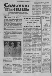 ПРОЛЕТАРИИ ВСЕХ СТРАН, СОЕДИНЯЙТЕСЬ! ПРЕОДОЛЕВАЯ ТРУДНОСТИ ОРГАН КАРАСУКСКОГО РАЙКОМА КПСС И РАЙОННОГО СОВЕТА НАРОДНЫХ ДЕПУТАТОВ НОВОСИБИРСКОЙ ОБЛАСТИ Газета основана 2 октября 1930 г. № 17 (7376) СУББОТА, 10 ФЕВРАЛЯ 1990 г- Цена 3 коп. Животноводы колхоза им. Ленина устойчиво выполняют доводимые планы по реализа ции государству молока и мя са. В минувшем году они, не смотря на трудности, также справились с намеченным. План по продаже молока вы полнили на 112 проц., а с вкла дом индивидуальных сдатчиков — на 129. Среди дойных гур тов лучшие результаты в бри гаде № 1, руководит которой В. П. Писаренко (бригадир дой ного гурта Н. Н. Шапран). Ими продано 8847 ц молока, что на 1347 ц больше намеченного. Все молоко сдано первым сор том. Прибыль только от реали зации молока составила 539 тысяч рублей за год. Дороже нынче обходятся хо зяйству корма для скота. Их приходится закупать в Черепа- новском и Кочновском райо нах. Поэтому себестоимость од ного центнера молока возросла по сравнению с плановой на 2 рубля. Труженики ферм колхо за стараются использовать имеющиеся возможности для преодоления трудностей в зи мовке общественного стада. А РОДИОНОВ. Пленум ЦК КПСС Я —7 февраля 1990 года состоялся очередной Пленум Цент рального Комитета КПСС. На его рассмотрение был внесен вопрос о проекте Платформы ЦК КПСС к XXVIII съезду пар тии. С докладом по этому вопросу выступил Генеральный секре тарь ЦК КПСС М. С. Горбачев. В работе Пленума участвовали первые секретари ЦК компар тий союзных республик, крайкомов, обкомов и окружкомов пар тии, председатели Президиумов Верховных Советов и председа тели Советов Министров союзных республик, не входящие в состав центральных органов КПСС, группа первых секретарей горкомов, райкомов партии, секретарей парткомов крупных первичных партийных организаций, а также руководителей ми нистерств, центральных ведомств, творческих союзов и органи заций, ученые, представители Вооруженных Сил СССР, средств массовой информации, шахтеры некоторых угольных бассейнов страны. На Пленуме была образована редакционная комиссия по до работке проекта Платформы ЦК КПСС к XXVIII съезду партии и подготовке постановления Пленума по обсуждавшемуся вопро су. После всестороннего рассмотрения предложений редакционной комиссии Пленум одобрил доработанный с учетом поступивших замечаний и состоявшегося обсуждения проект Платформы ЦК КПСС к XXVIII съезду партии и принял постановление по это му вопросу. Проект будет опубликован в печати для широкого обсуждения в партийных организациях, среди коммунистов и всех трудящихся. На Пленуме было продолжено обсуждение вопросов, связан ных с решениями XX съезда Компартии Литвы. По этому вопросу выступил М. С. Горбачев. Пленум принял по данному вопросу постановление, которое публикуется в печати. С заключительным словом на Пленуме выступил М. С. Горба чев, (ТАСС). Здорово поработал в 1989 году коллектив бригады А. ІПитвиной из пищекомбината, став победителем районного социалистического соревнова ния. Он еще в ноябре выпол нил годовой план по выпуску сладкой продукции. Успех — в слаженности Г С хорошим настроением вступил в новый трудовой год коллектив районного узла свя зи. Этому способствовали дости гнутые результаты старого. Пе ревыполнены такие показатели, ' как прирост телефонов и радио трансляционных точек, объем произ