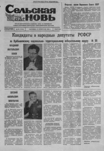 ПРОЛЕТАРИИ ВСЕХ СТРАН, СОЕДИНЯЙТЕСЬ! ОРГАН КАРАСУКСКОГО РАЙКОМА КПСС И РАЙОННОГО СОВЕТА НАРОДНЫХ ДЕПУТАТОВ НОВОСИБИРСКОЙ ОБЛАСТИ Газета основана 2 октября 1930 г. № 20 (7379) ПЯТНИЦА, 16 ФЕВРАЛЯ 1990 г. Цена 3 кои. Открытие сессии Верховного Совета СССР Москва. (ТАСС). 14 февраля в Кремле совместным заседа нием Совета Союза и Совета Национальностей начала работу третья сессия Верховного Совета СССР. Вступительным сло вом сессию открыл Председатель Верховного Совета СССР М. С. Горбачев. Повестка дня сессии весьма разнообразна и насыщена, на мечается обсудить 50 вопросов, из них 20 нуждаются в перво очередном рассмотрении. В повестке дня — предложение Пре зидиума Верховного Совета СССР о созыве в ближайшее время внеочередного Съезда народных депутатов СССР. Его проведе ние диктуется необходимостью внести ряд изменений, дополне ний в Конституцию СССР по вопросам политической системы, собственности, укрепления Советского государства, рассмотреть вопрос об учреждении демократической президентской власти в нашей стране. . Большое внимание на сессии будет уделено проектам фунда ментальных экономических законов — таких как о собствен ности, о земле, о социалистическом предприятии, налоговой системе, об общих началах местного самоуправления и местно-, го хозяйства, законопроектам, важным в социальном плане. Кандидаты в народные депутаты РСФСР по Куйбышевскому национально- территориальному избирательному округу № 58 ВЛАДИМИР . АНАТОЛЬЕВИЧ БОКОВ Председатель исполкома Но восибирского областного Сове та народных депутатов. В. А. Боков родился в 1927 году в деревне Бурнаши Ту- таевского района Ярославской области. Трудовую деятель ность начал в 1948 году пос ле окончания Рыбинского авиа ционного техникума. Работал литейщиком, мастером, стар шим мастером на Омском мо торостроительном заводе им. Баранова. В эти же годы без отрыва от произвбдства окончил физико-математичес кий факультет Омского педа гогического института. В 1952 году вступил в КПСС. С 1954 года В. А. Бо ков на партийной работе: сек ретарь цеховой партийной ор ганизации моторостроительно го завода, а затем инструктор, заведующий отделом, секре тарь Октябрьского райкома партии г. Омска. В 1958 — 1963 годах — заместитель за ведующего отделом партийных органов Омского обкома КПСС. С 1963 года В. А. Бо ков вновь работает на заводе им. Баранова секретарем парт кома. В 1965 году коммунисты Центрального района г. Омска избирают его . первым секрета рем райкома КПСС. С 1967 года он работает заведующим отделом легкой, пищевой про мышленности и торговли, за ведующим отделом организа ционно-партийной работы Ом ского обкома КПСС. С января 1973 года В. А. Боков тру дится в качестве инструктора отдела организационно-партий ной работы ЦК КПСС. В 1979 году он избирается вто рым секретарем Новосибир ского обкома КПСС, а в 1983 году — председателем испол нительного комитета Новоси бирского областного Совета народных депутатов. На всех участках партийной и советской работы В. А. Бо ков зарекомендовал себя энер гичным, принципиальным и требовательным руководителем. Он является членом бюро об кома КПСС, депутатом двух последних созывов Верховно го Совета РСФСР, членом Президиума Верховного Сове та РСФСР, депутатом област ного Совета народных депута тов. Был делегатом XXVI и ХХѴП съездов КПСС, XIX партийной конференции. Трудова