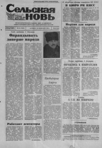 К обсуждению проекта платформы ЦК КПСС В БЮРО РК КПСС ПРОЛЕТАРИИ ВСЕХ СТРАН, СОЕДИНЯЙТЕСЬ! В районе началось обсужде ние проекта Платформы ЦК КПСС XXVIII съезду партии. С этой целью проходят партий ные собрания, политзанятия, проведен единый политдень. Для сбора и обобщения пред ложений по проектам Платфор мы ЦК КПСС и Устава партии, проект которого будет опубли кован несколько позже, созда на рабочая комиссия под пред седательством первого секрета ря райкома партии И. Ф Го- ловатого. Бюро райкома КПСС обра щается к партийным организа циям, коммунистам, беспар тийным принять активное уча стие в обсуждении предложен ных документов. Предложения, замечания направлять в орга низационный отдел райкома партии или звонить по телефо нам; 51-567, 51-506, 36-23. ОРГАН КАРАСУКСКОГО РАЙКОМА КПСС И РАЙОННОГО СОВЕТА НАРОДНЫХ ДЕПУТАТОВ НОВОСИБИРСКОЙ ОБЛАСТИ Партия для народа Газета основана 2 октября 1930 г. Слово кандидату в депутаты Оправдывать доверие народа Как кандидат в депутаты и просто как гражданин, считал и считаю главной своей обязан- - ностью — постоянно оправды вать доверие народа, в сложное для партии и страны время ра ботать с большей отдачей, в первую очередь по идеологи ческому воспитанию, повыше нию авторитета члена КПСС, сплочению ее рядов на Плат форме ЦК КПСС к XXVIII съезду партии. Если я буду избран в депу татский корпус, то за основу своей депутатской работы возь му платформу районной пар тийной организации и буду от стаивать и добиваться ее вы полнения во всех инстанциях. Первоочередными задачами считаю следующее: повышение роли Советов от сельского до областного, передача им реаль ной власти на местах, в даль нейшем переход на местное самоуправление. Чтобы этого добиться, нужно всем нам ак тивно работать по ускорению принятия законов о местном самоуправлении, о земле и соб ственности, в которых эти воп росы законодательно решены. Вместе с принятием этих за конов буду работать, чтобы из менить существующие, годами сложившиеся формы и методы работы Советов, когда на сес сии нередко преобладают эмо ции, обсуждаются удачные или неудачные доклады, а нужно обсуждать проекты решений, которые должны подготавли ваться при активном участии избирателей. Тогда депутаты будут более ответственны за принятие решений, смогут про контролировать исполнитель ные органы. Население района, любого поселка должно знать, чем занимаются избранные ими депутаты. Считаю, что с пере ходом на новую структуру ра боты Советов — избранием президиумов из числа депута тов и формирования исполко мов — эффективность работы каждого депутата должна воз расти. На сессиях и президиу мах решений принимать по меньше. а контролировать их выполнение более строго. До биться этого можно, если регу лярно через газету, по ра дио информировать на селение о работе Советов всех уровней. Наравне с этим вопросом предстоит упор ная работа по выполнению со Работают агитаторы Совсем немного времени ос талось до 4 марта — дня вы боров народных депутатов РСФСР и местных Советов. Каждый избиратель отдаст свой голос за более достойного по его мнению кандидата. Большая ответственность в пе риод предвыборной кампании ложится на агитаторов. Поэто му в совхозе им. Дзержинске го на всех фермах образованы агитационные пункты. Распо № 23 (7382) ЧЕТВЕРГ, 22 ФЕВРАЛЯ 1990 г. циальных программ «Жилье», 