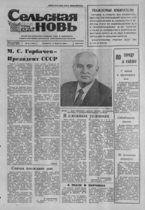 ПРОЛЕТАРИИ ВСЕХ СТРАН, СОЕДИНЯЙТЕСЬ! ОРГАН КАРАСУКСКОГО РАЙКОМА КПСС И РАЙОННОГО СОВЕТА НАРОДНЫХ ДЕПУТАТОВ НОВОСИБИРСКОЙ ОБЛАСТИ Газета основана 2 октября 1930 г. № 33 (7392) СУББОТА, 17 МАРТА 1990 г. Цена 3 коп. ........................................................................................................................... пн ......... ІІІІИІП.» | | УВАЖАЕМЫЕ ИЗБИРАТЕЛИ! | | СЕГОДНЯ, В СУББОТУ, ВСЕ ИЗБИРАТЕЛЬ- | | НЫЕ УЧАСТКИ ПРИГЛАШАЮТ ВСЕХ ВАС ДЛЯ | | ПЕРЕГОЛОСОВАНИЯ ЗА КАНДИДАТОВ В ДЕ | | ПУТАТЬ! РСФСР ПО НАЦИОНАЛЬНОМУ № 58 | I И ТЕРРИТОРИАЛЬНОМУ № 529 ОКРУГАМ, | | А ТАКЖЕ ЗА КАНДИДАТОВ В ДЕПУТАТЫ ОБ | | ЛАСТНОГО ОКРУГА № 173, РЯДА РАЙОННЫХ, | і ГОРОДСКИХ И СЕЛЬСКИХ ОКРУГОВ. ИЗБИРАТЕЛЬНЫЕ УЧАСТКИ ЖДУТ ВАС | | С 7 ДО 20 ЧАСОВ. | М. С. Горбачев — Президент СССР Михаил Сергеевич Горбачев избран Президентом Союза Советских Социалистических Республик на внеочередном третьем Съезде народных депу татов СССР. По итогам тайно го голосования, завершивше гося около полуночи 14 марта, кандидатура М. С. Горбачева на этот пост нашла поддержку 1329 депутатов. Против было подано 495 голосов. Резуль таты голосования были огла шены на Съезде утром 15 мар та. Вопрос об избрании Прези дента СССР Съезд рассмотрел накануне вечером. Слово было предоставлено депутату В. А. Ивашко. Только что состоялось вто рое заседание мартовского Пленума ЦК КПСС, сказал он. На Пленуме единогласно в ка честве кандидата на пост Пре зидента СССР выдвинут Ми хаил Сергеевич Горбачев. При обсуждении этого вопроса вы ступившие товарищи обращали внимание на тот большой вклад, который М. С. Горба чев внес в обновление нашего общества, нашей жизни. Яв ляясь автором и инициатором перестройки, он настойчиво, последовательно осуществля ет эту линию и на внешнепо литической арене, и внутри страны. Выступавший обратился к Съезду с просьбой поддержать решение Пленума ЦК КПСС. Депутат В. И. Алкснис со общил о том, что депутатская группа «Союз» предлагает внести в список кандидатур на пост Президента СССР Вадима Викторовича Бакатина, Михаи ла Сергеевича Горбачева, Ни колая Ивановича Рыжкова. Затем состоялось обсужде ние кандидатур — в алфавит ном порядке. Слово взял В. В. Бакатин. Министр внутрен них дел СССР выразил искрен нюю благодарность группе «Союз» и попросил самоотвод. После обмена мнениями Съезд удовлетворил эту просьбу. Далее на обсуждение была внесена кандидатура М. С. Горбачева. Оно было бурным, острым, высказывались раз ные, порой противоположные Считая последние дни Долгий период подготовки к предстоящему полевому сезо ну вступил в завершающую фазу. Считанные дни остают ся до той поры, когда на прос торах сельхозугодий развер нутся работы весеннего агро комплекса. Земледельцы кол хоза им. Тельмана многое сде лали для того, чтобы прошел он на высоком уровне и зало жил прочный фундамент под урожай-90. На больших площадях про ведено снегозадержание. Для подкормки озимых зерновых и сеяных трав завезено около сотни тонн мочевины. За зим ний период в мастерской отре монтировано большинство ком точки зрения. Завершив об суждение, в ходе которого вы ступили 17 человек, депутаты абсолютным большинством го лосов приняли решение внести кандидатуру . М. С. Горбачева в бюллетень для тайного голо сования по выборам Президен- та СССР. Обсуждения кандидатуры Н. И. Рыжкова фактически не проводилось, поскольку Пред седатель Совета Министров СССР не дал согласия балло тир