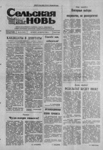 ПРОЛЕТАРИИ ВСЕХ СТРАН, СОЕДИНЯЙТЕСЬ! НОВЬ ОРГАН КАРАСУКСКОГО РАИ КОМА КПСС' И РАЙОННОГО СОВЕТА НАРОДНЫХ ДЕПУТАТОВ НОВОСИБИРСКОЙ ОБЛАСТИ 2о1тяб5я Н 1 О 930 а г. № 38 (7397) ЧЕТВЕРГ, 29 МАРТА 1990 г. Цена 3 коп. о КАНДИДАТЫ В ДЕПУТАТЫ Районной избирательной комиссией по выборам в Карасук- ский районный Совет народных депутатов зарегистрированы следующие кандидаты в народные депутаты Карасукского рай. онного Совета народных депутатов (двадцать первого созыва): Наше интервью Повторные выборы: непривычно, но демократично Бобрышев Александр Ивано вич — 1960 года рождения, беспартийный, инженер-техно лог филиала Новосибирского электровакуумного завода, г. Карасук, по избирательному округу № 14. Омельченко Владимир Ва сильевич — 1949 года рожде ния, член КПСС, г. Карасук, по избирательному округу Посаженников Сергей Ва лентинович — 1956 года пож. дения, беспартийный, старший инженер ремонтного завода «Карасунекий», г. Карасук, по избирательному округу № 14. Погадаев Валерий Михайло вич — 1941 года рождения, член КПСС, директор молоч но-консервного комбината, г. Карасук, по избирательному ок ругу № 14. Могилевцева Наталья Нико- лаевна — 1960 года рождения, беспартийная, портная ателье Карасукского районного про изводственного объединения бытового обслуживания насе ления, г. Карасук, по избира тельному с-ругу № 21. Морозе Владимир Василье вич — 1963 года рождения, кандидат в члены КПСС, пер вый секретарь райкома ВЛКСМ, г. Карасук по изби рательному округу № 21. Зайцев Владимир Иванович ■ — 1937 года рождения, член КПСС, старший электромеха ник дистанции сигнализации и связи Западно-Сибирской же лезной дороги, г. Карасук, по избирательному округу № 23. Ковалев Федор Степанович — 1963 года рождения, член КПСС, следователь следст венного отдела линейного от дела внутренних дел на ст. Карасук Зап.-Сиб. ж. д„ г. Ка расук, по избирательному ок ругу № 23. Красуля Валерий Иванович — 1954 года рождения, бес партийный, председатель спор Резонанс Чудо-озеро спасем! Уважаемая редакция! Про читала в газете «Сельская новь» за 24 марта с. г. статью врача районной больницы В. Швеца о Михайловском со. леном озере и не могу не воз мутиться решением загубить это целебное озеро. В течение многих десятков лет служит оно людям своими целитель ными свойствами. Один на всегда излечил геморрой, дру гой встал на ноги, третий изба вился от аллергии и т. д. Что лично мне дает это озе. ро? Отекают руки или ноги — прикладываю грязь, лечу ос теохондроз, нервную систему. Весной начинаются обострения всех болезней. С нетерпением жду лета. Купание в озере ус. покаивает все мои недуги. А тивного клуба «Локомотив», г. Карасук, по избирательному округу № 27. Найбауэр Виктор Карлович — 1951 года рождения, бес партийный, директор стадиона «Локомотив», г. Карасук, по избирательному округу № 27. Пузырев Виктор Михайло вич — 1953 года рождения, беспартийный, машинист элек тровоза цеха эксплуатации ос новного локомотивного депо Карасук, г. Карасук. по изби рательному округу № 27. Надолинный Владимир Ни. колаевич — 1960 года рожде ния, беспартийный, слесарь цеха текущего ремонта элек тровозов основного локомотив ного тепловозного депо Кара сук, г. Карасук, по избиратель ному округу № 35. Пономарев Юрий Валенти нович — 1962 года рождения, беспартийный, учитель физ культуры полной средней школы № 1, г. Карасук, по избирательному округу 