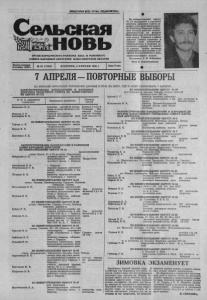 ПРОЛЕТАРИИ ВСЕХ СТРАН. СОЕДИНЯЙТЕСЬ! Сельская іИньНОВЬ ОРГАН КАР АСУ КСКОГО РАЙКОМА КПСС И РАЙОННОГО СОВЕТА НАРОДНЫХ ДЕПУТАТОВ НОВОСИБИРСКОЙ ОБЛАСТИ По избирательному округу № 14 кандидатом в народные депутаты районного Совета на родных депутатов баллотирует ся Александр Иванович Бобры шев, который работает инжене ром-технологом на филиале Новосибирского электровакуум ного завода. Главным в работе депутата считает внимание к нуждам своих избирателей, компетентность в решении де путатских вопросов. Он намеча ет уделить особое внимание микрорайону педучилища в во просах благоустройства и куль турно-спортивного отдыха. На снимке: А. И. Бобрышев. Фото В. Коробейникова. Газета основана 2 октября 1930 г. № 40 (7399) ВТОРНИК, 3 АПРЕЛЯ 1990 г- Цена 3 коп. 7 АПРЕЛЯ-ПОВТОРНЫЕ ВЫБОРЫ ПО ПРОСЬБЕ ЧИТАТЕЛЕЙ ПУБЛИКУЕМ ДАННЫЕ О ТОМ, ЗА КОГО, ГДЕ И КОМУ ГОЛОСОВАТЬ 7 АПРЕЛЯ. ЗАРЕГИСТРИРОВАНЫ КАНДИДАТАМИ В НАРОДНЫЕ ДЕПУТАТЫ ОБЛАСТНОГО СОВЕТА ПО ИЗБИРАТЕЛЬНО МУ ОКРУГУ № 172. Ф. И. О. кандидатов в депутаты Занимаемая должность Границы округа Давиденко В, Н. Иванова Л. П. Кашеваров В. И. секретарь партийной органи- Благод а т с к и й, зации колхоза «Вперед к ком- Троицкий, Зна- мунизму»; менский, Студе- главный врач района; новский, Октябрь- главный ветеринарный врач ский сельские Со района. веты. ПО ИЗБИРАТЕЛЬНОМУ ОКРУГУ № 174 Гофман А. Ф. бригадир ремонтного завода «Карасукский»; Иванов В. Н. машинист-инструктор основно го локомотивного тепловозно го депо Карасук; Никитенко Я. В. директор Карасукского ремон тно-технического предприя тия. восточная часть г. Карасука, п. Ягодный, п. Ярки. ЗАРЕГИСТРИРОВАНЫ КАНДИДАТАМИ В РАЙОННЫЙ СОВЕТ НАРОДНЫХ ДЕПУТАТОВ ПО ИЗБИРАТЕЛЬНОМУ ОКРУГУ № 14 место голосования улица Щорса, 51 и 52 до конца, Педучилище. Бобрышев А. И. инженер-технолог филиала Новосибирского электрова- Педучилище куумного завода, г. Карасук: Омельченко В. В. г. Карасук: Посаженников С. В. старший инженер ремонтного завода «Карасукский», г. Ка расук: Погадаев В. М. директор молочно-консервно го комбината, г. Карасук. ПО ИЗБИРАТЕЛЬНОМУ ОКРУГУ № 21 улицы: Чапаева, Красносельская, Урицкого, Пушкина, Сибирская, Кирова. Могилевцева Н. Н. портная ателье районного про изводственного объединения Дом культуры бытового обслуживания насе- желеэнод о р о ж- ления, г. Карасук: ников, Морозов В. В. первый секретарь райкома ВЛКСМ, г. Карасук. ПО ИЗБИРАТЕЛЬНОМУ ОКРУГУ № 23 улицы: Лермонтова, Садовая, Гоголя, Зеленая, Сорокина, Джамбула. Зайцев В И. старший электромеханик ди станции сигнализации и свя- Дом культуры зи Зап.-Сиб. ж. д„ г. Карасук; железнодо р о ж- Ковалев Ф. С. следователь следственного от- ников, дела линейного отдела внут ренних дел на ст. Карасук, Зап.-Сиб. ж. д., г. Карасук. ПО ИЗБИРАТЕЛЬНОМУ ОКРУГУ №66 аул Стеклянный, разъезд Чебачий, поселок Чебачий. обгонный пункт 391 км. Акимов С. Г. военный комиссар районного военного комиссариата, г. Ка- Дом культуры с. расук; Шилово-Курья. Мыльникова М. А. учитель Шилово-Курьинской средней школы, село Шило во-Курья. ЗАРЕГИСТРИРОВАНЫ КАНДИДАТАМИ В НАРОДНЫЕ ДЕ- ‘ ПУТАТЬ! КАРАСУКСКОГО ГОРОДСКОГО СОВЕТА НАРОД НЫХ ДЕПУТАТОВ. ПО ИЗБИРАТЕЛЬНОМУ ОКРУГУ № 5 ул. Островского, Терешковой, Восточная, Дещенко, Лесная ' Надолинная Е. А. санитарный врач районной СЭС; средняя школа Николаев К. И. инструктор райкома партии. № 1 ПО ИЗБИРАТЕЛЬНОМУ ОКРУГУ № 7 ул. Комсомольская,