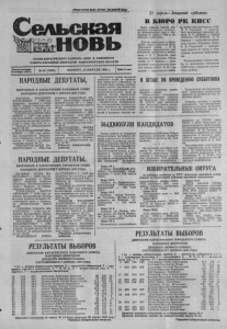 ПРОЛЕТАРИИ ВСЕХ СТРАН, СОЕДИНЯЙТЕСЬ! 21 апреля - Ленинский субботник Сельская Шаьновь В БЮРО РК КПСС ОРГАН КАРАСУКСКОГО РАЙКОМА КПСС И РАЙОННОГО СОВЕТА НАРОДНЫХ ДЕПУТАТОВ НОВОСИБИРСКОЙ ОБЛАСТИ Газета основана 2 октября 1930 г. № 45 (7404) ЧЕТВЕРГ, 12 АПРЕЛЯ 1990 г. Цена 3 коп. Бюро райкома партии под держало инициативу коллекти ва локомотивного депо о про ведении 21 апреля 1990 г. ле нинского субботника. Для его подготовки и прове дения создан районный штаб. Начальник . штаба — С. В. Кульневич, председатель рай исполкома; заместитель началь ника — П. Г. Парыгин, пред седатель горисполкома. Члены штаба: А. Г. Бабкин — заве дующий идеологическим отде лом райкома КПСС, В. М. Чер нышов — председатель райко ма профсоюза работников АПК, М. И. Карманов — замести тель начальника отделения до роги, Ф. С. Ковалев — второй секретарь РК ВЛКСМ, С. В. Назаров — заместитель редак тора газеты «Сельская новь», Е В. Голынский — заведую щий отделом по труду и соци альным вопросам райисполко ма. Рекомендовано создать шта бы по проведению ленинского субботника в трудовых коллек тивах района. НАРОДНЫЕ ДЕПУТАТЫ, ИЗБРАННЫЕ В КАРАСУКСКИИ РАЙОННЫЙ СОВЕТ НАРОДНЫХ ДЕПУТАТОВ 7 АПРЕЛЯ 1990 ГОДА МОРОЗОВ ВЛАДИМИР ВАСИЛЬЕВИЧ — 1963 года рождения, кандидат в члены КПСС, первый секретарь рай кома ВЛКСМ, г. Карасук, по избирательному округу № 21. ЗАЙЦЕВ ВЛАДИМИР ИВА НОВИЧ — 1937 года рожде- йия, член КПСС, старший элек тромеханик дистанции сигнали зации и связи Зап.-Сиб. ж. д., г. Карасук, по избирательному вкрѵгѵ № 23. КРАСУЛЯ ВАЛЕРИИ ИВА НОВИЧ — 1954 года рожде ния, беспартийный, председа тель спортивного клуба «Локо мотив», г. Карасук. по избира тельному округу № 27. ПОНОМАРЕВ ЮРИИ ВА ЛЕНТИНОВИЧ — 1962 года НАРОДНЫЕ ДЕПУТАТЫ, ИЗБРАННЫЕ В КАРАСУКСКИИ ГОРОДСКОЙ СОВЕТ НАРОДНЫХ ДЕПУТАТОВ 7 АПРЕЛЯ 1990 ГОДА ВЕЧИРКО ИГОРЬ ВА СИЛЬЕВИЧ — 1966 года ро ждения, кандидат в . члены КПСС, секретарь комитета комсомола железнодорожного узла, г. Карасук, по избира тельному округу № 24. ДОРОГАВЦЕВ ВИКТОР ПЕТРОВИЧ — 1956 года ро ждения, беспартийный, слесарь текущего ремонта основного ло. комотивного депо, г. Карасук, по избирательному округу № 25. ГРЕБНЕВА ТАМАРА МИ ХАИЛОВНА — 1944 года ро ждения, беспартийная, заведу ющая клубом п. Ягодный, по избирательному округу № 38. МАСЛОВЕЦ ВАСИЛИИ ВЛАДИМИРОВИЧ — 1961 года рождения, беспартийный, учитель средней школы № 49, г. Карасук, по избирательному округу № 29. НАДОЛИННАЯ ЕЛЕНА рождения, беспартийный, учи- тель. физкультуры неполной средней школы № 1, г. Кара сук, по избирательному округу № 35. КОРОБЕЙНИКОВ ВАЛЕ РИИ АНАТОЛЬЕВИЧ — 1961 года рождения, член КПСС, фотокорреспондент районной газеты «Сельская новь», г. Ка расук, по избирательному окру гу № 47. МЫЛЬНИКОВА МАРИЯ АЛЕКСАНДРОВНА — 1936 года рождения, беспартийная, учитель Шилово-Курьинской средней школы, село Шилово- Курья, по избирательному ок ругу № 66. Районная избирательная комиссия. АНАТОЛЬЕВНА — 1956 года рождения, беспартийная, сани тарный врач районной СЭС, г. Карасук, по избирательному округу № 5. СУШКОВ ВАЛЕРИЙ ИВА НОВИЧ, 1957 года рождения, беспартийный, машинист основ ного локомотивного депо, г. Ка расук, по избирательному ок ругу № 36. ФЕДОРОВ ВЛАДИМИР АЛЕКСЕЕВИЧ — 1953 года рождения, беспартийный, элек трик автотранспортного пред приятия, г. Карасук, по изби рательному округу № 17. ХАРЧЕНКО ФЕДОР ВА СИЛЬЕВИЧ — 1958 года ро ждения, член К