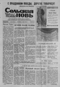 С ПРАЗДНИКОМ ПОБЕДЫ, ДОРОГИЕ ТОВАРИЩИ! ОРГАН КАРАСУКСКОГО РАЙКОМА КПСС ■ РАЙОННОГО СОВЕТА НАРОДНЫХ ДЕПУТАТОВ НОВОСИБИРСКОЙ ОБЛАСТИ Газета основааа 2 октября 1930 г. Письмо Героя Дорогие мои земляки-карасу- чане! Участники Великой Отече ственной войны! Сердечно, по- дружески поздравляю вас с праздником — 45-летием Ве ликой Победы над фашистской Германией и в вашем лице тру жеников города и района. Советские люди вечно будут с благодарностью вспоминать героев-сибиряков, которые в грозном 1941 году своей гру дью защищали Москву, кото рые насмерть стояли у стен Сталинграда, которые пронесли с тяжелыми боями свои побед ные знамена от Сталинграда до Берлина и Праги. С каждым днем все меньше и меньше остается в живых тех, кто с оружием в руках защищал нашу Родину. Наш священный долг — отметить 45-летие Победы, а 9 мая не забыть живых и тех, кто не дожил до этих дней и покло ниться им. Карасукская зем ля дала Родине девять Ге роев Советского Союза. Отечественная война была самой тяжелой из всех пере житых войн нашим народом! Фашисты ставили своей зада чей в кратчайший срок разгро мить наше государство, унич тожить 70 проц, населения, а оставшихся превратить в ра бов. Наш народ, наши солдаты видели, что фашисты уничто жают наши города, грабят на житое веками нашим народом добро. Они расстреливали не только военных, но и мирное население, стариков, женщин и детей. Наш народ сказал «нет, не бывать, не топтать нашу свя щенную землю фашистскими сапогами». Шли в бой, прояв ляя бесстрашие, любовь к Ро дине своими героическими де лами, громили врагов, уничто жая фашистскую нечисть и умирали. Они отдали свою жизнь за Родину, чтобы она была свободная, а их внуки и дети жили счастливой жизнью. Я часто приезжал в свой род ной город Карасук. В центре города стоят бюсты Героям Советского Союза, написаны имена тех, кто отдал свою жизнь за нашу Родину. Это вечно будет в памяти народ ной. Мы, ветераны, говорим спасибо за это. Я с чувством большой радо сти, гордости переживаю каж дое сообщение о Карасуке, ра дуюсь за ваши успехи и пе- чалюсь за ваши недостатки. Я радуюсь за молодежь Ка- расука, за тех, кто честно и добросовестно служит в армии и трудится на производстве, горжусь нашими юношами-ин тернационалистами. В общем, выражаю уверен ность, что мои земляки, вете раны войны и труда, наши уча щиеся, труженики города вне сут достойный вклад в рево люционную перестройку, в Строительство гуманного, де мократического социализма в нашей стране. Н КЛИМОВСКИЙ, Герой Советского Союза. г, Тула. ИСТОРИЯ МАЛОЙ РОДИНЫ ОБ ОТКРЫТИИ КРАЕВЕДЧЕСКОГО МУЗЕЯ В г. КА- РАСУКЕ (филиала Новосибирского областного краеведче- ского музея н картинной галереи). № 56 (7415) ВТОРНИК, 8 МАЯ 1990 г. Цена 3 коп. В прошедшую пятницу в Карасуке состоялось открытие краеведческого музея. В самом начсЙіе у здания райкома пар тии собрались ветераны войны и труда района. Вот они вы страиваются в колонну и мед ленно шагают по направлению мемориала Славы воинов-ге роев. Они несут венки. Там их возлагают, чтут память по гибших. Вот колонна ветеранов вмес те с руководителями района подходит к зданию музея. Вход в музей преграждает алая лента — сегодня день откры тия музея, в самый канун 45- летия Дня Победы. С небольшой речью перед присутствующими выступил заместитель председателя рай исполкома В. И. Филатов. Он горячо поздравил вете