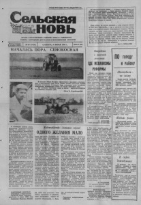 ПРОЛЕТАРИИ ВСЕХ СТРАН, СОЕДИНЯЙТЕСЬ. ОРГАН КАРАСУКСКОГО РАЙКОМА КПСС И РАЙОННОГО СОВЕТА НАРОДНЫХ ДЕПУТАТОВ НОВОСИБИРСКОЙ ОБЛАСТИ Газета основана 2 октября 1930 г. № 69 (7428) СУББОТА, 9 ИЮНЯ 1990 г. Цена 3 коп. На Президентском совете — а этому вопросу было по священо три заседания — было уделено большое внима ние обсуждению всей проблематики, связанной с перехо дом к регулируемому рынку. Все были согласны с тем, что сейчас уже медлить нельзя. При всей сложности ны нешней ситуации надо действовать, ибо уже в ближайшие месяцы ситуация станет еще более напряженной, трудной. Откровенно говоря, и опасной. * * * Даже сейчас, на крутом повороте — а мы подошли именно к этой фазе перестройке, — мы в основном все-таки упира емся в неготовность нашего общественного сознания. Что там говорить, мы ведь с вами дети своего времени, очень закомп- лектованы, очень перегружены старыми привычками. Мы очень любим простые решения самых сложных вопросов. А их нет уже. И все попытки найти такие решения, вроде скатерти-самобранки, которая сняла бы все вопросы, говорят о том, что мы еще не освободились от прошлых иллюзий. Но это все пройдет. Общество меняется. М. С. ГОРБАЧЕВ. НАЧАЛАСЬ ПОРА СЕНОКОСНАЯ Откровенно о рыночной экономике ПО городу ГДЕ МЕХАНИЗМЫ И РАЙОНУ РЕФОРМЫ Автомобили ~ В колхозе «Маяк Ильича» приступили к косовице естествен ных и многолетних трав. Столь раннее начало заготовки кормов вызвано погодными условиями, ведь полеводам этого хозяйства необходимо заскирдовать более 25 тысяч центнеров сена. На снимках: сгребание сена в валки; кормозаготовнтель Н. Степанов; косовица трав. Фото В. Коробейникова. У полеводов района разво рачивается очередная горячая работа — заготовка кормов для общественного животновод ства и скота частного сектора. Включаются в зеленую жатву и механизаторы колхоза «Впе ред к коммунизму», которым предстоит запасти в зиму свы ше 30 тысяч центнеров сена и 5 тысяч центнеров сенажа. Нынешний сенокос шилово- курьинцы начинают примерно на неделю раньше прошлогод него. Свои коррективы внесла природа: из-за сухой и жаркой погоды травы раньше подошли к уборке, а естественные, осо бенно на возвышенных лугах, уже в первых числах июня на чали сохнуть на корню, подго. рать. Площади кормовых угодий в хозяйстве весьма солидные. Нашим полеводам предстоит со брать урожай с 1930 гектаров естественных лугов, с 235 гек таров сеяных однолетников, с 420 гектаров орошаемых пло щадей. Именно с последних и начинает зеленую жатву кол лектив кормодобывающей бригады, возглавляемой моло дым агрономом С. Ольховым. Такой маневр . предпринят с той целью, чтобы на макси мально возможной части по ливных многолетников — сме си люцерны и костреца — Животноводству ~ достаток кормов ОДНОГО ЖЕЛАНИЯ МАЛО взять три укоса. Думается, на меченная цель шиловокурьин- цам по силам: ведь в Студе- новском совхозе уже не один сезон добиваются подобного, такую же задачу поставили нынче и в совхозе «Россий ский», с которым граничит наш колхоз. Полив идет организо ванно, минеральные удобрения для подкормки плантаций пос ле уборки каждого урожая есть, бригада оснащена нуж ным количеством техники. В распоряжении механизаторов пара косилок-плющилок, столь ко же косилок КДП-4, по двое сеноворошилок, граблей ГП-14 и боковых граблей, три сенных комбайна. Такая вооруженность позволит провести у