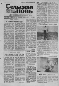 ПРОЛЕТАРИИ ВСЕХ СТРАН, СОЕДИНЯЙТЕСЬ! НА XXVIII СЪЕЗДЕ КПСС і ° — » Газета основана 2 октября 1930 г. Страда сенокосная С ответственностью К 6 июля в районе заготов лено 130656 ц сена, что сос тавляет 19,5 проц, к плану, и сенажа — 54813 ц — 13 проц. Сенаж заготавливают только три хозяйства. Например, Сту- деновский совхоз заготовил с первого укоса люцерны на се наж 22859 ц и уже сегодня очевидно, что эта цифра утро ится. Как же можно оценить се годня сенокосные дела? Я бы рассматривал их только с од ной позиции. Как идут дела на орошаемых землях, таков и се нокос. Отрадно отметить, что колхоз им. Ленин получил оро шаемый участок от строителей площадью 150 га и теперь все хозяйства района имеют полив ные земли. С большим сожале нием приходится констатиро вать, что неоднократные засу хи прошлых лет мало чему нас научили. Опять, как и неодно кратно уже поднимала наша газета эту проблему, есть хо зяйства, где поливные земли кормят весь скот, а есть и та кие, где поливные земли не дают отдачи. Удовлетворительно ведут за готовку кормов колхозы «Впе ред к коммунизму», им. Куй бышева, им. Карла Маркса, им. Мичурина, совхозы «Рос сийский», Студеновский, Ка лачинский. Только с первого укоса поливных земель полу чили в колхозе им. Карла Маркса по 45 ц с га сена, а в колхозе «Вперед к коммуниз У животноводов района РАССЧИТЫВАЮТ СИЛЫ Животноводы колхоза им. Ленина трудятся над выпол нением девятимесячного пла на продажи государству моло ка и мяса. С планом полуго дия, несмотря на трудности, они справились. Так, молока реализовали на 1348 центнеров больше намеченного — 7800 ц. Заметную помощь в этом ока зали и владельцы личных по дворий, сдав хозяйству 1430 ц продукции. Труженикам молочного цеха было доведено задание надо ить за шесть месяцев по 1340 кг молока от каждой коровы в среднем. Результат оказался в целом по колхозу на 1 ц вы ше. А коллектив животново дов, руководит которым много лет Надежда Назаровна Шап- ран, превысил плановую циф ру на 140 кг. . Испытывает хозяйство боль шой недостаток в кормах. Но находят резервы. И, надо за метить, кормление дойного стада в летний период не ху же прошлогоднего. Правда, се бестоимость 1 ц молока ока залась дороже на 5 рублей против уровня прошлого года. Это и понятно: хозяйство имеет большой перерасход средств на заготовке кормов за преде лами района. Зато не допус- 5ИДИ снижения продуктивности НОВЬ ОРГАН КАРАСУКСКОГО РАЙКОМА КПСС И РАЙОННОГО СОВЕТА НАРОДНЫХ ДЕПУТАТОВ НОВОСИБИРСКОЙ ОБЛАСТИ № 82 (7441) ВТОРНИК, 10 ИЮЛЯ 1990 г. Цена 3 кои. му» убрали все поливные зем ли и первыми в районе при ступили к поливу на второй укос, в совхозе «Российский» звеньевой А. Н. Насрутдинов, о котором писала газета, полу чил от 41 до 51 ц с га сена. И на 6 июля оба участка уже полил на два раза и готов по лучить второй укос выше пер вого. к Но надо откровенно сказать, что темпы заготовки кормов низкие. В целом по району на капливают немногим более 10 тыс. ц сена, чтобы выполнить план по сену необходимо около 70 суток. А такого срока нам природа не выделила. Большие трудности сложи лись на заготовке кормов в колхозах «Новая семья», им. Калинина, в совхозе Хорошин- ском. Например, в последнем с 12 июня по 2 июля заготовили 800 ц сена, или по 40 ц в сут ки. Чтобы заготовить 57000 ц сена им бы потребовалось при таких темпах три года. Что явилось главной причиной низ ких темпов кормозаготовки в совхозе? Пер