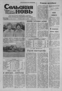 Успехи путейцев ОРГАН КАРАСУКСКОГО РАЙКОМА КПСС И РАЙОННОГО СОВЕТА НАРОДНЫХ ДЕПУТАТОВ НОВОСИБИРСКОЙ ОБЛАСТИ Газета основана 2 октября 1930 г. № 92 (7451) ЧЕТВЕРГ, 2 АВГУСТА 1990 г. Цена 3 кои Стабильно трудится в этом году коллектив 24-й дистанции пути. В течение всего периода выполняется основной наш по казатель — состояние пути. Что способствовало этому? В первую очередь бригадный подряд, материальный стимул, значительно возросла заработ ная плата. Улучшилась 1 замет но дисциплина труда, меньше стало прогулов. Среди коллек тивов наиболее устойчиво ра ботают путейцы станций Ка- расука, околотка № 18. Особо следует сказать о коллективе околотка № 16. В этом году он впервые добился значитель ных трудовых успехов, дваж ды в полугодии выходил ц>- бедителем социалистического соревнования. ' И. ЧЕХ, председатель профкома ПЧ-24. СЕССИЯ РАЙСОВЕТА 3 августа, в 14 часов, в Доме Советов состоится сессия районного Совета Готовность комбайнов в предстоящей уборке проверили механизаторы колхоза «Вперед к коммунизму» на косовице озимых, которые были убраны на площади 240 га. Первые десятки гектаров скошенной ржи в нынешней уборочной кампа нии записали на свой счет комбайнеры И. А. Петров и В. А. Вандакуров из этого хозяйства. На снимках: комбайнеры И. А. Петров, В. А. Вандакуров; комбайны в поле. Фото В. Коробейникова. СВЕДЕНИЯ О СДАЧЕ МОЛОКА В ЗАЧЕТЕ ХОЗЯЙСТВАМИ РАЙОНА НА 31 ИЮЛЯ 1 гр. — • сдано молока (в ц.), 2 гр. — тр к 1989 г. Хорошинский 140 Калиновский 120 Калачинский 119 им. Дзержинского 98 Студеновский 95 «Октябрь» 83 им. Карла Маркса 79 им. Куйбышева 66 «Вп. к коммун.» 64 им. Ленина 59 — 2 + 3 + 8 + 2 — 10 + 4 — 3 + 2 — 20 Овощи к нашему столу В АВОСЬКЕ... НИТРАТЫ На базарных прилавках — разнообразие овощей, фруктов, ягод. Продаются из южных рай онов яблоки, арбузы, сливы, персики. Манят к себе покупа телей ярко-пунцовые помидо ры и нежно-зеленые огурцы, ранняя капуста, как бы говоря: выбирай, покупатель. «Но не унеси с собой вместо витами нов нитраты в авоське», хоте ли бы добавить мы. Об этом шел разговор нашего коррес пондента с директором рынка П. Дынником и ветврачом ла боратории В. Колесниковой. — Скажите, пожалуйста, Павел Павлович, какие основ ные заботы у вас сейчас на рынке? им. Жданова 55 им. Мичурина 52 им. Калинина 47 «Новая семья» 39 «Маяк Ильича» 39 «Российский» 35 «Карасукский» 34 им. Тельмана 14 По району 1239 + 7 + 3 + 6 — 21 + 3 — 1 — 12 — 31 — В связи с полученной инструкцией из Новосибир ского облпотребсоюза мы сей час должны создать необходи мые условия для четкого функ ционирования лаборатории ве теринарно-санитарной экспер тизы. Особенно в сезон массо вого поступления продукции нового урожая и кроме того обязать контролеров колхозных рынков проверять у торгующих наличие справки ветсанлабора- тории рынка о пригодности про дукции для продажи. — Скажите, как на деле осуществляется эта инструк ция? (Окончание на 2 стр.) ДНЕВНИК ЗАГОТОВКИ КОРМОВ В конце минувшей недели практически на всей террито рии района прошли дожди, местами очень обильные. В Студенбм, к примеру, за одну только пятницу выпало 127 миллиметров осадков — вдвое больше месячной нормы июляі Естественно, сложившаяся об становка сказалась на ходе зеленой жатвы, притормозив сенозаготовку. Поэтому при бавка сена за истекшую неде лю в целом по району соста вила всего 26 тысяч центнеров, а всего к 31 июля его наскир- довано почти 255 тысяч цен