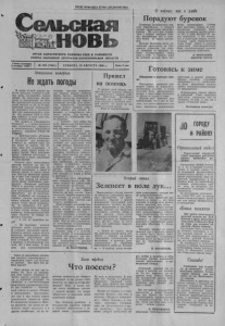 ПРОЛЕТАРИИ ВСЕХ СТРАН СОЕДИНЯЙТЕСЬ! ОРГАН КАРАСУКСКОГО РАЙКОМА КПСС И РАЙОННОГО СОВЕТА НАРОДНЫХ ДЕПУТАТОВ НОВОСИБИРСКОЙ ОБЛАСТИ Газета основана 2 октября 1930 г. № 102 (7461) СУББОТА, 25 АВГУСТА 1990 г. Цена 3 коп О кормах, как о хлебе Порадуют буренок Полеводы Калачинского сов хоза параллельно с уборкой урожая продолжают заготовку кормов. На днях они справи лись с планом закладки сена жа, натрамбовав его в тран шеи более 47 тысяч центне ров. Больше половины этого ко личества приходится на Пав ловское отделение, где поми мо люцерны на закладку се нажа использовалась смесь овса с соей и горохом, корм из которой должен быть осо бенно питательным. Сейчас идет заготовка сенажа на Ани- симовском отделении. Кала чницы поставили задачу запас ти его к зиме больше 50 ты сяч центнеров, а это значит, что в стойловый период значи тельная часть общественного стада будет иметь в рационе добротный консервированный корм, способствующий подъему продуктивности животных. Л. РОГОЗНЫЙ, директор совхоза. Актуальное интервью Не ждать погоды Готовясь к зиме В конце второй декады ав густа погодные условия в рай оне резко ухудшились, пошли дожди. За минувшие воскре сенье и понедельник во всех без исключения колхозах и сов хозах выпало от 20 до 50 мил лиметров осадков. Эпизодичес ки выпадали они в последую- технику третьего отделения, где осадков выпало особенно много, быстро перебросили на уборку кукурузы четвертого и пятого отделений, где сырость несколько меньше. Для сниже ния влажности силосуемой массы добрые хозяева добав ляют солому, что, кстати, по- Пришел на помощь С первых дней уборки уро жая на полях колхоза «Вперед к коммунизму» хорошо рабо тает Владимир Иосифович Ткаченко (на снимке) — учи тель трудового обучения мест ной школы. Он занят на вы возке силосной массы. Фото В Коробейникова. Обращение к жителям горо да. Постоянная комиссия рай онного Совета по коммуналь но-бытовым услугам в конце сентября будет рассматривать вопрос о подготовке жилищно го фонда в городе к зиме. Просим всех жителей дать информацию, что у нас не сде лано, что плохо выполнено (ре монт отопления, водопровода. утепление и ремонт водораз борных колонок, утепление подъездов и т. д.), чтобы мож но было объективно оценить работу жилищно-коммунально го предприятия. Информацию просим давать в районный Совет народных депутатов письменно или по телефону 51-644, а так же в газету «Сельская новь». Постоянная комиссия. щие дни завершающейся неде ли. Это вызвало сбой в поле вых работах, в ряде мест тех ника вообще встала. Что делать в сложившихся условиях? — с таким вопросом наш корреспондент обратился к исполняющему обязанности главного агронома РАПО Н. Гаврику. — Действительно, обстанов ка на полях района сложилась в последние дни непростая, особенно на хлебной ниве. Но это вовсе не значит, что те перь надо все остановить и ждать, когда придет вновь хо рошая погода. Ведь ожидание может слишком затянуться и обернуться в итоге пагубными последствиями. Сегодня надо использовать каждый погожий час для ра боты со скошенными еще до дождей зерновыми, а Таких в районе свыше 11. тысяч гекта ров. Кое-где намокшие пшени ца и овес уже начали прорас тать. При первой же возмож ности валки необходимо пере вернуть ' боковыми граблями ГВК-6 и другими технически ми средствами для более быст рого просыхания и немедленно 