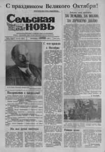 С праздником Великого Октября! ПРОЛЕТАРИИ ВСЕХ СТРАН, СОЕДИНЯЙТЕСЬ! Сельская 'ИйілНОВЬ Раздумья перед праздником ЗА ЗЕМЛЮ, ЗА ВОЛЮ, ЗА ЛУЧШУЮ ДОЛЮ Газета основана 2 октября 1930 г. ОРГАН КАРАСУКСКОГО РАЙКОМА КПСС И РАЙОННОГО СОВЕТА НАРОДНЫХ ДЕПУТАТОВ НОВОСИБИРСКОЙ ОБЛАСТИ Цена 3 коп. № 133 (7492) ВТОРНИК, 64 1990 г. В. И. Ленин. Петроград Январь 1918 Фотохроника ТАСС. Поздравляем с наградами! Указом Президента СССР за достижение высоких резуль татов в производстве, продаже и переработке сельскохозяйствен ной продукции на основе применения прогрессивных технологий и передовых методов организации труда награждены: ОРДЕНОМ ПОЧЕТА Илюшин Валерий Иванович — главный агроном совхоза «Студеновский». Луцко Иван Лаврентьевич — водитель автомобиля молочно консервного комбината. ОРДЕНОМ ТРУДОВОЙ СЛАВЫ III СТЕПЕНИ Лупашко Василий Поликарпович — тракторист совхоза «Российский». Переверза Виктор Александрович — тракторист совхоза «Калиновский». Степанец Мария Николаевна — дражеровщик пищекомби ната «Карасукский». МЕДАЛЬЮ «ЗА ТРУДОВУЮ ДОБЛЕСТЬ» Кавалеристова Надежда Павловна — доярка колхоза им. Ленина. Комисар Михаил Афанасьевич — водитель автомобиля сов хоза им. Дзержинского. МЕДАЛЬЮ «ЗА ТРУДОВОЕ ОТЛИЧИЕ» Романюк Раиса Никитична — доярка колхоза им. Куйбы шева. Яцун Любовь Андреевна — доярка колхоза им. Карла Маркса. С чем пришли к Октябрю В эти предпраздничные дни лидерам предоктябрьского со ревнования — совхозу «Рос сийский», колхозу «Вперед к коммунизму», молочно-кон сервному комбинату, ремонт но-техническому предприятию, райпо, УРСЖ, ПМС-216 — вручены переходящие Красные знамена, Почетные грамоты. Они, кроме того, занесены на районную доску Почета. * * * Выполнение общего объема отправления грузов за III квартал по отделению дороги составило 108,2 проц. В этом видна большая заслуга поезд ных диспетчеров, дежурных по отделению, работников других профессий. Следует отметить старание, добросовестное от ношение к делу А. И. Шапо ренко, С. И. Федорцева, Е. И. Гладченко, В. А. Вдовиной, Г. Ф. Чернопазовой и других. * * * Достойно встречает 73 го довщину Октября трудовой коллектив вагонного депо Ка- расук. За девять месяцев кол лектив перевыполнил балан совую прибыль, поднялась производительность труда, сни жена себестоимость преследо вавшего вагона через пункты технического обслуживания. Повторно использовано мате риалов и запчастей на сумму 16 тыс. руб. Отлично справил ся со своими обязанностями коллектив смены, руководимой Г. А. Самариным. Смена ра ботает без нарушений трудовой и технологической дисципли ны, улучшила производствен ную деятельность. В этом ус пехе весомая доля В. Л. Голу бец, В. А. Ильина, В. А. Мед ведева, Е. С. Ситникова, А. Г. Назаровой, автоматчика О. Г. Козляковской. Хорошо потру дились осмотрщики вагонов М. С. Горб, А. П. Зайцев, С. Л. Шелудько. * * * Производственную програм му девяти месяцев коллектив 24-й дистанции пути заметно перевыполнил, увеличилась прибыль. Хороших успехов в труде стабильно добиваются бригады путейцев ст. Карасук-І и III (мастера П. С. Рыбников и В. М. Черноусов). Очистительное движение гласности, вызванное перестройкой, беспощадная переоценка ценностей порой напоминают и пере кликаются в своих крайностях с революционным процессом 17-го года. Экстремизм — попутчик нетерпеливых и недальновидных. Вспомним, сколько нелепых,