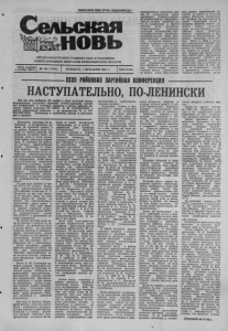ПРОЛЕТАРИИ ВСЕХ СТРАН, СОЕДИНЯЙТЕСЬ! Сельская ШаНОВЬ ОРГАН КАРАСУКСКОГО РАЙКОМА КПСС И РАЙОННОГО СОВЕТА НАРОДНЫХ ДЕПУТАТОВ НОВОСИБИРСКОЙ ОБЛАСТИ Газета основана 2 октября 1930 г. № 144 (7503) СУББОТА, 1 ДЕКАБРЯ 1990 г. Цена 3 коп. промышленном комплексе, так как 50 коммунистов сдали партбилеты. Решается вопрос об освобожденных секретарях, кое-где, видимо, придется ид ти на совмещение с другой работой. Далее докладчик охарактеризовал нынешнее состояние производства сель скохозяйственной продукции, производственной базы пере рабатывающей промышленно сти, положение личных под собных хозяйств и их возмож ностей. Особая роль в про ведении аграрной политики, сказал он, отводится партор ганизациям, чтобы использо вать возможности райкома для пополнения прилавков ма газинов. Он отметил некото рую оторванность социаль ных программ от экономичес ких возможностей района. Осветил вопрос строительст ва жилья, дорог. Так, больше нем составе ревкомиссии ос новной их работе за отчетный период. Комиссия осуществля ла контроль за прохождением писем, заявлений, жалоб в аппарате райкома партии, ре дакции газеты «Сельская новь», за поступлением в пар тийную кассу денежных средств, правильным и эко номным их расходованием. Он привел, например, такие дан ные. Всего в 1989 г. посту пило партвзносов 193692 руб. Финансирование было опре делено на содержание райко ма партии в сумме 235966 руб. (дотация ЦК КПСС соста вила 42274 руб.). Фактически иарасходовано 225671 руб. Экономия средств составила 10295 руб. Она в основном по заработной плате за счет вы плат по больничным листам и временного недоукомплек тованна ответственных работ- - - - - - - - - - - - - - - - - - - - - - - - ШІІ МЙОНШ ПАРТИЙНАЯ КОНФЕРЕНЦИЯ - - - - - - - - - - - - - - - - - - - - - НАСТУПАТЕЛЬНО, ПО-ЛЕНИНСКИ Как мы уже сообщали, 23 ноября в Доме культуры желез нодорожников состоялась районная отчетно-выборная партий ная конференция. С отчетным докладом о работе райкома вы ступил первый секретарь РК КПСС И. Ф. ГОЛОВАТЫЙ, о работе ревизионной комиссии — ее председатель А. А. СО БОЛЕВСКИЙ. Публикуем в изложении доклад и выступле ния в прениях. Докладчик рассказал об из менениях в руководящих ор ганах за отчетный период и их работе. Впервые были соз даны из членов райкома три комиссии. В работу бюро, ко миссий, хотя и были состав лены планы, вносились коррек тивы. В основном же работа ли согласно перспективному плану. Проведено 11 плену мов райкома, 32 заседания бюро, где обсуждено более ста вопросов жизнедеятельности районной парторганизации. Бы ла организована учеба моло дых коммунистов, секретарей первичных и цеховых органи заций. Двадцать парторгани заций отчитались на бюро по вопросу внутрипартийной, идейно-политической работы. Проходило в парторганизаци- ях индивидуальное собеседо- вание. За два года принято в чле ны КПСС 67 человек. Напри мер, парторганизация совхоза «Российский» (секретарь Н. И. Ващенко) за два года приня ла 8 человек, здесь ни один член партии не вышел из КПСС. 34 парторганизации продолжали вести прием в партию. В 1990 году прием в партию снизился, особен но после XXVIII съезда КПСС и учредительного съезда КП РСФСР и продолжает се годня снижаться. За девять месяцев этого го да исключено и выбыло по за явлению за нежелание быть в рядах КПСС, за неуплату членских взносов и непрохож- дение кандидатского стажа 347 человек, из них рабочих и колхо
