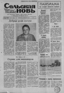 ПРОЛЕТАРИИ ВСЕХ СТРАН, СОЕДИНЯЙТЕСЬ ! ОРГАН КАРАСУКСКОГО РАЙОННОГО СОВЕТА НАРОДНЫХ ДЕПУТАТОВ И РАЙКОМА КПСС НОВОСИБИРСКОЙ ОБЛАСТИ 2 о а ктя Т б а ря С 1930 Н г. № 10 (7525) СУББОТА, 26 ЯН ВАРЯ 1991 г. |-Нен. б коп Добрые руки сестры » * | ПАНОРАМА | « до I ПО СОЮЗУ ОБЛАСТИ РАЙОНУ } я» яа =в =» ваг® я» ®а =а =«=»=» =8 я = я ® я “ а « ! ®=«» ж == “ :5 = вв= * 8::в 585 585 =вЯаЯа ® : ' <1 В хирургическом отделении районной больницы работает анестезисткой медсестра Ни на Васильевна Вейт. Доброже лательная, скромная, она пользуется заслуженным ува жением в коллективе отделе ния. Профессию медсестры вы брала Нина Васильевна в да леком 1952 году, когда по ступила в Вольскую фельд шерско-акушерскую школу в Саратовской области. В 1954 году по распределению попала в с. Веселовка Краснозерско- го района, а в 1960 году она начала работать в нашей боль нице. Сразу была она медсе строй общего профиля, посто вой, старшей медсестрой, а с 1968 года — анестезистка, помогает врачу-анестезиологу в даче наркоза. Довелось Нине Васильевне поработать еЩе в старом зда нии районной больницы. Ког да в 1973 году перешли в но вое, с удовольствием оцени ли подарок строителей, са нитарно-технические условия резко изменились в лучшую сторону. Вот только в послед нее время бич отделения — отсутствие воды, не бывает ее довольно часто. — Профессия мне очень нравится, - говорит Н. В. Вейт. — Теперь уже я отрабо тала свое, но уйти из коллек тива не смогла, осталась еще на год. Если здоровье позво лит. буду работать еще. Добрым словом вспомина ет Нина Васильевна тех, с кем начала свой путь в медицине В районной больнице Это вра чи-анестезиологи А. Романов, Н. Черкасов, Г. Мищенко. Сейчас работает с молодым врачом В. 1?сг. р>ловым. С теплотой рассказывает Н. В. Вейт о годах, отданных медицине. Сколько ночей не дали доспать срочные вызовы в отделение! Порой встречали здесь и праздники, дежуря у постели тяжелобольного паци ента. Работа была на первом мес те. И к этому уже привыкли муж Виктор Андреевич, шо фер райбольницы, сын Сер- Как начинаем год гей Мечтала Нина Васильевна, что по ее стопам пойдет сын, но он выбрал иной путь. — Спал и видел себя за ру лем, — улыбается она, — и ничего не поделаешь, у каж дого свой путь. Сергей работает на ремза воде, управляет КамАЗом. Подрастает внучка — второ классница, бабушкина радость. Не заметила Нина Василь евна, как пролетели годы. Все гда на посту, всегда готовая помочь. Н. КОВАЛЕНКО. На снимке: Н. В. Вейт. Фото В. Коробейникова. Заседание президиума райсовета На очередном заседании президиума райсовета народ ных депутатов рассмотрен ши рокий круг вопросов жизни района. В их числе общие на чала формирования комму нальной собственности, обра зование внебюджетных фондов при исполкоме райсовета, об разование депутатской комис сии по приватизации и разго сударствлению. На президиуме утвержде ны: положение работы коми тета рабочего контроля; ус тав районной газеты «Сельская новь» и договор учредителей и редакции газеты. Были рассмотрены также предложения по структуре районного комитета по зе мельной реформе, об отводе земли СМУ «Новосибирсквод- мелиорация» в постоянное пользование для организации коллективного садоводства. Более подробная информа ция будет дана. В ремонте комбайны Как обычно организованно ведут подготовку техническо го парка к очередному поле вому сезону труженики колхо за им. Кар