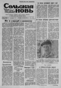 ПРОЛЕТАРИИ ВСЕХ СТРАН, СОЕДИНЯЙТЕСЬ! Сельская Шжновь НА СЕССИИ ВЕРХОВНОГО СОВЕТА СССР ОРГАН КАРАСУКСКОГО РАЙОННОГО СОВЕТА НАРОДНЫХ ДЕПУТАТОВ И РАЙКОМА КПСС НОВОСИБИРСКОЙ ОБЛАСТИ Газета основана 3 октября 1930 г. 85 (7600) ВТОРНИК, 16 ИЮЛЯ 1991 г. 5 коп. Москва. (ТАСС). Документ, от которого зависит будущее нашего государства, был 11 июля в центре внимания участ ников сессии Верховного Со вета СССР. Депутаты обсужда ли проект Союзного договора. Ведший заседание А. И. Лу кьянов отметил, что проект, работа над которым длилась больше года, подготавливался в сложных политических усло виях, пришлось потратить мно го усилий для достижения со гласованных позиций. Сейчас наступает завершающий этап, требующий особо тщательной оценки положений документа. С докладом о проекте дого вора, доработанном по пору чению Съезда народных деду-* татов СССР подготовите льным комитетом, выступил Предсе датель Совета Национальностей Р. Н. Нишанов. Обсуждение проекта догово ра проходило достаточно остро< взволнованно. Прозвучало нема-* ло критики, но преобладала поддержка документа, несмот ря на высказываемые сущест венные к нему замечания. Вы- ступавшие предлагали уточне ния, изменения в текст догово ра, новую редакцию отдель ных его положений, вместе в тем выражалось настойчивое пожелание ускорить окончите, льную доработку документа и его подписание. Не в ущерб главному НА СЪЕЗДЕ НАРОДНЫХ ДЕПУТАТОВ РСФСР В марте сего года «Сельская новь» рассказывала своим чи тателям о том, что в коллективном предприятии им. Дзержин ского берутся за совершенно новое для районного полеводства дело — выращивание кукурузы на зерно. Прошло четыре меся ца. И вот на днях наш корреспондент побывал на полях Расска зовской фермы предприятия, поинтересовался ходом работ на плантациях зерновой кукурузы. Приехали мы сюда вместе с А. Иванцом, представителем Курганского научно-исследова тельского института зернового хозяйства, с которым дзержин цы заключили соответствую щий договор. Анатолий Андре евич держит под постоянным контролем работу звена А. Бо родавкина, а именно ему дове рено опробовать новинку, кон сультирует его по всем техно логическим вопросам. Еще по дороге мой попут чик рассказал , что .нагрузка на долю коллектива, в котором вместе со звеньевым трудятся В. Шнайдер, С. Семенюта, С. Трахименок, В. Шепило, А. Леонов и В. Петрушенко, вы пала большая. Внушительная площадь пашни — 1400 гекта ров, из которых по 600 га за нимают кукуруза и пары, а остальное — семенной участок люцерны. У звена пять тракто ров, полный набор почвооб рабатывающей, посевной и убо рочной техники. Забот по ве сне добавило то, что многое из машин и инвентаря, полу ченных с заводского конвейе ра пришлось комплектовать в самые сжатые сроки, букваль но перед самым выходом в поле. И сама технология работы с зерновой кукурузой скороспе лых сортов «молдавский-215» и «Бема-181» оказалась более насыщенной и сложной, неже ли обычной силосной. Тем не менее весенний агрокомплекс звено провело в полном соот ветствии с научными рекомен дациями. Под посев внесли азотные и фосфорные минера льные удобрения, а на 100 гектарах в качестве экспери Наперекор А трудностям В атом году животноводам колхоза им. Ленина приходит ся сталкиваться с большими трудностями. В период минув шей зимовки использовали для общественного стада привозные 