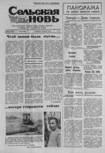 П РОЛЕТАРИИ ВСЕХ СТРАН, СОЕДИНЯЙТЕСЬ! ОРГАН КАРАСУКСКОГО РАЙОННОГО СОВЕТА НАРОЛНЬТХ 1ГЕПѴТАТОВ И РАЙКОМА КПСС НОВОСИБИРСКОЙ ОБЛАСТИ Газета основана I ѵ оп , 7ЙП=П 2 октября 1930 г. I № 90 < 7605) СУББОТА, 27 ИЮЛЯ 1991 г. 5 коп Чтоб зимою было сытно.... і ПАНОРАМА } ПО СОЮЗУ ОБЛАСТИ РАЙОНУ | Завтра — День города 28 ИЮЛЯ 1991 ГОДА СОСТОИТСЯ ГОРОДСКОЙ ПРА ЗДНИК. ' Кормовые угодья колхоза им. Куйбышева тянутся в ок рестностях озера Мелкого пря мо вдоль республиканской ав тодороги. Справа от шоссе орошаемый участок, слева — другой, сразу за ним залив ные приречные луга. Места привольные, щедрые, и куй бышевцы стараются в полной мере использовать эту щед рость земную. Когда бы ни проезжал здесь в летнюю пору, всегда уви дишь крестьянскую работу, внешне неброскую, размерен ную, но столь важную и от ветственную. Сверкают над изумрудными плантациями трав струи рукотворного дождя, стрекочут кузнечиками ко силки, урчат натужно мотора ми тракторы с прицепами, груженными свежим сеном. Именно отсюда на фуражные склады хозяйства поступает основной его объем. Не скрывает своего удовлет ворения ходом зеленой жатвы председатель колхоза Н. Во- львач. Основания для этого имеются: к началу текущей недели куйбышевские полево ды заготовили более 14 ты сяч центнеров сена, что было лучшим показателем среди всех десяти колхозов района. — Может, ваши угодья обильнее, чем у других, по мочили дожди и травы уда лись богаче? — спрашиваю Николая Николаевича. — Нет. осадков и засухи цам досталось, как и соседям, — - улыбнулся председатель. — Все дело в организации тру да, в возросшей ответственно сти людей. В прошлом году, к примеру, природные условия для кормозаготовки были бо лее благоприятные, однако темпы нынче не ниже. ..косари стараются Завершив первый укос многолетних трав на орошаемых участках кормозаготовители комплексной бригады № 1 колхо за им Куйбышева перевели свою сенокосную технику на заго товку луговых трав и камыша. Хороших результатов на косови це добивается Василий Радченко, у которого один из луч- ших показателей среди косарей хозяйства. На снимках: идет косовица трав; В. Радченко. Фото В. Коробейникова, Тщательно подготовились к сезону-91 труженики хозяйст ва. С приходом весны прове ли реконструкцию орошаемо го 200-гектарного участка № 1, заменив старые алюминиевые трубы оросительной сети но выми стальными. Это позво лило существенно повысить качество полива, а значит под нять продуктивность мелиори рованного гектара. Работу орошенцев организовали в две смены. В итоге набор сена с гектара превысил с первого О кормах, как о хлебе укоса 30 центнеров, что для нынешнего экстремально жар кого сезона весьма неплохо. Четко организована работа всех трех кормодобывающих звеньев, которые возглавляют В. Симоненко, В. Левченко и Н. Досжанов. Каждый из кол лективов имеет определенную программу и конечную цель. Так, первые два звена прежде всего убрали закрепленные за ними орошаемые площади, за тем перебросили технику на естественные луга и в камы- шовые займища. Для косовицы камышей имеются специально оборудованные машины. Об щая суточная производитель ность всех трех звеньев ста бильно составляет 800- Ю00 центнеров сена. Для производительной ра. боты участников зеленой жат вы созданы неплохие произ водственно-бытовые условия. Налажено техобслуживание, ужин у кормодобытчиков б