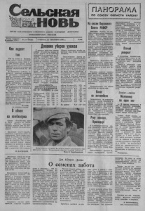 Сельская Шжновь ОРГАН КАРАСУКСКОГО РАЙОННОГО СОВЕТА НАРОДНЫХ ДЕПУТАТОВ НОВОСИБИРСКОЙ области Газета основана I .. ,, . •2 октября 1930 г. I I 14 (7628) СУББОТА, 21 СЕНТЯБРЯ 1991 г. 5 коп. Дневник уборки урожая Они задают тон Тон на жатве в Калинов ском совхозе задают коллекти вы полеводов ферм №№ 2 и 3. Они раньше других закон чили косовицу своих площадей зерновых культур и теперь все усилия сосредоточили на об молоте. В Нестеровке особенно от личился опытный комбайнер В. Дьяченко, уложивший в валки десятиметровой жат кой 850 гектаров колосовых, после чего поспешил со своим «степным кораблем» на по мощь хлеборобам централь, ной фермы. А в Свободном Труде высокие показатели име. ют комбайнеры Н. Симонов и А. Гладкий. і Наиболее высококачествен- іное зерно пшеницы, овса, яч меня отбирается на семенные цели. Оно пропускается через очистительный комплекс и за сыпается в склад. Для буду щего ярового сева заготовле- ца уже почти половина плано. вого'объема семян. И. РАК, гл. агроном совхоза. В обмен на комбикорма Совхоз «Российский» идет в числе лидеров на уборке урожая. Обмолот зерновых культур ведется уже на пос ледней четверти посевных пло щадей. V Продукция полей подраба тывается и распределяется по назначению. Часть зерна гото вится на семена для будущего .ярового сева. Часть отгружа ется на элеватор. Так, к сере дине текущей недели совхоз отправил на элеватор в обмен на комбикорма 832 ц овса, 090 ц пшеницы, 105 ц проса. И. ВАСИЛЬЕВ. Уборочная страда на полях района идет на убыль. Но вто вовсе не значит, что у се лян поубавилось забот. Дел до завершения осеннего аг рокомплекса еще предостаточ. но и одно из важнейших — подготовка семфондов под яро вой сев-92. Прошедшая на текущей не. деле проверка показала, что работа с семенами движется медленно в крайне сложных из-за неустойчивой, с часты ми дождями погоды. В значи. тельной степени зерно посту пает с полей на тока увлаж. ненным, требуя к себе по вышенного внимания со сторо ны агроспециалистов и работ ников зернотоков. Но тем не менее в ряде мест этот важ нейший вопрос, от которого в ■решающей мере будет зави сеть урожай-92, решается до статочно успешно. Сказанное, прежде всего, касается совхозов Студенов- С каждым днем все меньше хлебов остается на корню на полях района. К 19 сентября зерновые были скошены на 61 тысяче гектаров, что соста. вило 80 проц, к плану. Все больше комбайнов переобору дуется на обмолот, который к четвергу был проведен на 40 тыс. га — 52 проц, к убороч ной площади. Накануне на значительной части террито рии района прошел дождь, по. этому суточная прибавка на обмолоте несколько снизилась и составила 1,4 тыс. га. А вот уборка силосных практически на финише. К 19 сентября кукурузу скосили на 20 тыс. га — это 94 проц, к общей площади плантаций. УРОЖАЙНОСТЬ ЗЕРНОВЫХ, силосных КУЛЬТУР И КАРТОФЕЛЯ НА 19 СЕНТЯБРЯ (в ц/га) им. Калинина 9,3 175 — им. Тельмана 9,0 80 — им. Куйбышева 8,9 92 — Студеновский 12,6 158 137 «Октябрь» 11,3 100 им. К. Маркса 9,8 169 — — им. Ленина 9,5 192 — Добросовестно трудится на уборке урожая механизатор Озе- ряновскои фермы Калиновского совхоза Оразбай Байтулов. Фото В. Коробейникова. ского и «Октябрь», КП им. Дзержинского, колхоза им. Куйбышева. Эти хозяйства уже накопили необходимое количе ство семенного зерна. Студе- новцы и куйбышевцы близки к выполнению планов и в разрезе по отдельным культу рам, до чего обоим оста