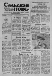 новь ОРГАН КАРАСУКСКОГО РАЙОННОГО СОВЕТА НАРОДНЫХ ДЕПУТАТОВ УКАЗ ПРЕЗИДИУМА ВЕРХОВНОГО СОВЕТА РСФСР О выборах глав местной администрации В соответствии с постановлением Верховного Совета РСФСР «О порядке введения в действие Закона РСФСР «О местном саіфоуправлении в РСФСР» Президиум Верховного Совета РСФСР постановляет: районным, городским и поселковым Советам народных депу татов провести выборы глав местной администрации 24 ноября 1991 года „ Первый заместитель Председателя Верховного Совета РСФСР Р. И. ХАСБУЛАТОВ. Газета основана 2 октября 1930 г Сервис Удобно всем Отделение связи в с. Чер ная Курья, пожалуй, единст венное в районе, где так удоб. ио трудиться и работникам связи, и работникам сберкас сы, не говоря уже о жителях села, которые приходят сюда отправить почтовую корреспон денцию, сделать денежный вклад н т. д. Помещение пре доставил колхоз «Новая се мья». А на днях в отделении свя- ви установлен телефон-авто, мат. Это особенно удобно для тех, у кого нет телефона до ма. Приходи и вызывай на пе. реговоры родных и близких из другого города. -------------------------------- — Дары осени В один из сентябрьских Дней в клубе молочно-консерв ного комбината была прове дена конкурс-выставка на те му «Дары осени» (организа торы — члены профкома предприятия и работники клуба). Активное участие в ней приняли и наши певсио. неры. Земля наша плодородна и щедра. Одаривает нас и та кими редкими плодами, как виноград, который представи ли на конкурс Н. Шаленова и Н. Степанюк. Овощи-великаны также бы. ли на выставке: морковь, редька, свекла (семьи Сафро новых), тыквы от 15 до 20 кг весом (Р. Бурцева и О. Дья ченко). Но королем среди ве ликанов оказался кабачок, вы. ращенный Г. Кожановым. Замечательны композиции Г. Порох «Ежик на полянке», «Три кита» и «Аквариум» — Н. Тарадойна, икэбана — М. Мыльниковой и Л. Сарапуло. вой. Лучшим признан букет цветов «Нежность» (Н. Мороз). Особенно хочется отметить работы сотрудников бухгалте рии. Их «Грибная поляна» и «Дары осени» были очень хо. реши. На конкурсе были представ лены и кушанья из овощей: салаты, оладьи из кабачков, компоты. Хоть и не совсем удалась наша задумка (мало было участников, совсем, к большому сожалению, не при няли в нем участие работни ки консервного, цельно.мо - лочного цехов). Но и то, что было сделано, радует глаз, поднимает настроение. Посе тители и участники дарили друг другу шутки и улыбки. После демонстрации экспона тов участниками было органи зовано чаепитие и вручение сувениров. М. АКУЛЕНКО, председатель профкома комбината. НОВОСИБИРСКОЙ ОБЛАСТИ № 115 (7629) ВТОРНИК, 24 СЕНТЯБРЯ 1991 г. б жоп. И молодежь, Десятки тружеников участ вуют в работах осеннего аг рокомплекса в колхозе им. Карла Маркса. Среди них люди всех возрастов. Раду, ет, что рядом с ветеранами не- мало молодежи. Первой в жизни является нынешняя страда для выпуск ников СПТУ.86 А. Мельника и С. Алексеенко. Полноправ ными колхозниками стали вы. пускники Ирбизинской сред, ней школы два брата Алек сандра Гавло, В. Попелышев, В. Чумак, В. Пимшин, С. Пи саренко, А. Зубец, В. Лобанов, В. Ларионов. А вот для многоопытных полеводов Крыловской брига ды Н. Соляника и В. Власен ко текущая страда далеко не первая по счету. Выращенная и убранная их руками куку. руза дала с гектара в сред. Бабушкин Богатая на природные да ры осень вступила в свои права. На столах у горожан появилась 