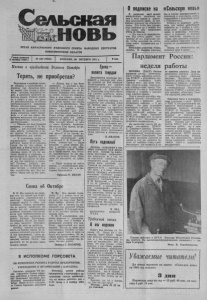 Сельская Ау. новь О подписке на «Сельскую новь» ОРГАН КАРАСУКСКОГО РАЙОННОГО СОВЕТА НАРОДНЫХ ДЕПУТАТОВ новосибирской области В редакцию идут звонки возмущенных читателей, что уже с этой недели в некото рых отделениях связи не при. нимают подписку на «Сельскую новь». Это более чем странно, ведь подписка до 1 ноября. Вот что сказал зам. начальника РУСа В. Павлов: — Это какое-то недоразуме. ние. Мы сейчас дадим теле граммы во все отделения свя зи, чтобы подписка на «Сель скую новь» принималась до 1 ноября. Начальник агентства «Союз печать» Н. Зверева ответила, что в случае недоразумений с подпиской в отделениях связи, подписчиков с радушием ждут в «Союзпечати». Хочется от редакции доба вить. что четкая организация подписки до 1 ноября в инте ресах всех: и районного узла связи, и агентства «Союзпе чать», и редакции, и, конечно же, читателей, многим из ко торых, уже некстати, задержи, вали выдачу зарплаты, что по влияло на организацию подпис ки. Будем же уважительно от. носиться друг к другу. 2 октября 1930 г. № 130 < 7644 > ВТОРНИК, 29 ОКТЯБРЯ 1991 г. 5 коп. Парламент России: Мнения о праздновании Великою Октября Терять, не приобретая? Подъезжая к конторе колхо. ва «Вперед к коммунизму», я увидела там большую груп пу людей. Они стояли у мага- вина, который находится ря. дом, в ожидании привозки ка- кого.то товара. Решила подой ти и узнать у них, что дума ют шиловокурьинцы по поводу приближающегося праздника. Моими собеседницами оказа. лись в основном женщины-пен сионерки. И, признаться, я бо ялась услышать ответ такого рода — а нам все равно. Не которые высказали эти мысли. Но большинство остались не равнодушными . — Раньше это был большой праздник, — говорит Л. К. Фа деева, — все сельчане собира. лись вместе, готовились к не. му заранее, И не было такой озлобленности, как сейчас. — В пластянках жили, — подхватывают женщины, — работали много, но и отдыхать умели. Не то, что сейчас: и клуб есть, а всегда тихо в нем. Да и отношение между поко лениями какое. В тот же ма газин придешь и слышишь — пенсионерам не давайте. А раз. ве мы не заслужили. И поче му все так меняется к плохо му? Хозяина доброго нет. Раньше на той же ферме был один человек — специалист, и ему подчинялись все, был по рядок, народ сам за все отве чал. Снова об Октябре 3. Л.: Мы выросли на созна. нин того, что живем при Совет, ской власти, стремимся все к светлому будущему, когда главный лозунг — «Все для человека». Горько осознавать, что во многом ошибались. Но каково все это воспринимать особенно старшему поколению, когда идет переименование го родов. Тем, кто, например, пе режил блокаду Ленинграда. Получается, что те, кто борол ся ради светлого будущего, ничего на деле не достигли. Октябрь никогда не вычер кнуть из памяти людей, он ос танется историей для всех нас. А как праздновать, пусть ре шают трудовые коллективы, каждый человек. Народ сам рассудит, но он должен знать полную правду. В ИСПОЛКОМЕ ГОРСОВЕТА ОБ ИЗМЕНЕНИИ РЕЖИМА РАБОТЫ ПРЕДПРИЯТИИ. УЧРЕЖДЕНИИ И ОРГАНИЗАЦИИ г. КАРАСУКА Согласно решению ѴП сес сии городского Совета народ ных депутатов, а также учиты вая пожелания трудовых кол- лективов, исполнительный ко митет Карасукского городско- го Совета народных депутатов решил: — Думаю, все у нас было правильно, — вступает в раз говор В. С. Тихонова. — А что исказили историю, мы не ви. новаты. Праздник этот, конеч но,