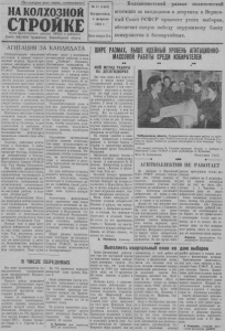 Пролетарии всех стран, соединяйтесь! Н А КОЛ ХО ЗНОЙ СТРОЙКЕ Opi ан Краснезерского райкома ВЕП(б) и районного Совета депутатов трудящихся, Новосибирской области № 11 (1443) Воскресенье, 4 февраля 1951 г . ' Цена номера 15 к. Большевистский размах политической агитации за кандидатов в депутаты в Верхов ный Совет РСФСР принесет успех выборам, обеспечит новую победу нерушимому блоку коммунистов и беспартийных. АГИТАЦИЯ З А КАНДИДАТА Избирательная кампания вступила в самый ответст венный период. Зарегистри рованы кандидаты в депу таты Верховного Совета РСФСР. Важнейшим усло вием успешного проведения избирательной кампании яв ляется широко развернутая агитационно-массовая рабо та за выдвинутых кандида тов в депутаты. Главная за дача агитаторов—знакомить избирателей с биографией кандидатов в депутаты, их общественно - политической и трудовой деятельностью, их заслугами перед Родиной. Выборы в местные Советы показали какую огромную роль играют агитаторы и агитпункты. И сейчас, в дни подготовки к выборам в Верховный Совет РСФСР, большинство агитаторов правильно поняли свои обя занности. Хорошо работают агита торы с. Полойки. С изби рателями они регулярно проводят беседы, ознакоми ли избирателей с биогра фией кандидата в депутаты Верховного Совета РСФСР тов. Тур Ивана Петровича. На службу дальнейшего упрочения советского строя, привлечения трудящихся к активной общественной де ятельности, повышению их политической сознательно сти поставлена агитацион но-массовая работа в кол хозе „Ленинград“. Целеустремленные бесе ды развернул агитколлектив села Половинное. Агитато ры проводят с избирателя ми содержательные, беседы о жизни и деятельности кандидата сталинского бло ка Ивана Петровича Тур. Между тем в ряде мест района избиратели остают ся вне поля зрения агита тора. Так, например, агита торы с. Садомное до сих пор не приступили к рабо те. Большинство избирате лей села не знают биогра фии кандидата. Еще хуже обстоит дело с агитацион но-массовой работой в кол хозе „Победа“, Мохнато- Логовского сельсовета. В колхозе есть избиратели, которые живут в полевых бригадах,но с начала изби рательной кампании здесь не было агитаторов. И не удивительно, что избирате ли не знают дня выборов, а также кто выдвинут кан дидатом. Недостаточно работают агитаторы в селе Краснозерск. Исключительную роль в эти дни приобретают агит пункты. Они должны стать подлинными центрами всей агитационно-массовой рабо ты. Сюда приходят избира тели, чтобы получить нуж ную справку, послушать лекцию, доклад, культурно отдохнуть. Партийные организации должны помочь агитпунк там шире использовать са мые разнообразные формы политической агитации. Не обходимо, чтобы в агитпунк тах, на десятидворках бе седы о кандидате в депу таты проходили на высоком идейном уровне. До дня выборов осталось немного времени, поэтому нельзя допустить, чтобы агитаторы и доверенные ли ца не охватили своей рабо той хотя бы одну улицу, один дом, одного избира теля. Агитаторы, доверенные лица призваны еще шире развернуть агитацию за вы двинутого кандидата, за его избрание в Верховный Со вет Российской Федерации, они должны всеми средст вами готовить избирате лей к активному и созна тельному участию в выбо рах. Шире размах политиче ской агитации за кандида та в депутаты Верховного Совета РСФСР, за 