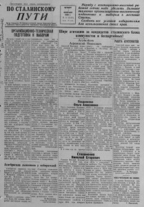 Пролетарии всех стран, соединяйтесь! ПО СТАЛИНСКОМУ ПУТИ Орган Северного РК Коммунистической партии Советского Союза и районного Совета депутатов трудящихся Новосибирской области ЧЕТВЕРГ 5 ФЕВРАЛЯ 1953 г. № И (1516) Цена 10 коп. Наряду с агитационно-массовой работой сейчас надо уделить большое внимание организационно-технической подготовке к выборам в местные Советы. Создать все условия избирателям для использования Своих прав. ОРГАНИЗАЦИОННО-ТЕХНИЧЕСКАЯ ПОДГОТОВКА К ВЫБОРАМ гото Н в а к с е ту к пил вы н б о о в р ы а й м эт в ап ме в стн п ы од е Советы депутатов трудящихся. т к П с ы о т о р н . а ч и ц и Д з и л о б я о в и с е р ь р к а е а т н н в е н д ы л ы и ь д д н е в а ы и т ж м о л е в и н о ц и к а е р в у и г и д а а е м р п г е и у г з т т и а а а л я т м о е р н и и ы е к в а е н и д д з у б и т и д р ат а ш т о и е в р л , о ей к с ое с их би т о о р з г у н р д а о а к в ф о о и м й деятельностью. Необходимо также организовать встречи к т и к о о з а в б м н и д и с р и т и а д ь з т а с б е т я и л о р и в с а о т в м е л о я г с д л м в е и и о п и у м с т л а и и т т ч ы е н м о ,чт о С о з о б н в ы а е цами и дать им наказ п ы о . сл Э а т н о еще и еще раз подтверждает, б р ч и о то м ра н т о в ь е н п в а р ш о а е р в й г о аны ст т р р а у г н д о е я су щ д и а м д р а с с н я т о ве и н о з г н п н о ы о И й л х ь з п в л о л р ю в а ав с д а т о т е и й ь . с в я ы д о к б с и а т к р о а м й т о н ь ж ы н д х о о , л п ж п о н р л е о н д е а и е н . с Долг партийной и советской о ш б о щ е ес в т н в и е м н а н н о и ст е и ор о г б а р н а и т з и а т ц ь ио б н о н л о ь - с г г т т р о е в а т х а ж о н в д и в к а ч е н е д а с е м к к н и ь м в м ы а б к г о с в о и р о л а м п о м а р с , л о о ь о в с н а б а ы м н ес е и п я в е у . ч д и п о Н о т б д ь а с н р д к и я е о с д в й я у а т т и ь р д а с в б т о о е р т х у ы к н с а и и х л ч н , е е а н с н к и е а у е л г ю м и ьз т я п п у п н н о о е д к д л г т о и о а о т т х ц и о е ч в и е ку. Настало время приступить к оборудованию помещений избирательных участков, к т и е з л го ь т н о ы в х лен у и р ю н и каб т и . н, д. и З з а б р и а р н а е е н н а и д и о , п о о т з о а п б л о е т н и и т и ь , ся о с о о б зд о а с н в и е и щев этотдень культурного отдыха избирателям. Следует заранее также знать тех избирателей, к которым о п б о хо т д о и й мо ил б и уде и т н п о о й сл п а р т и ь чи н н а е д н ом е переносную урну. Надо также п п х р р о о е р с с о т , ш а к р о а е к л п ы р о х о р д г у а м ни а и т з ь з а б ц и и р т я а а т п к е о о л д й е в й озк в и ои инвалидов Отечественной войны. ш г с о е и т л в о ь И а в с с л к о п е в о е п л т р к к а е о д м в с т ы е . д б а р о т а р О е й а л к м с я о у в н е в е т в С а а е м ве е о р с з т н а п н о с о ы г л о д е у Советы и выявлены факты, р ч я т д о ок ещ в е ыб н о е рное пр и ив м е у д щ ен е о ство в , н п е опринималось также мер к уточнению и исправлению списков избирателей. Тов. Окунев ждал когда ему об этом подскажет исполком п вынесет специальное решение. О к но т и м -м е а ч в с е с н о ы во п й с р е о р в р ь е а д е б з е о н н т и ы ы и е а с н г р е и е д т д о а и с ц т и а и о т з н бирателей. Надо сказать, что эти недостатки есть и в ряде других сельсоветов. бир Д а л те я ль того, мо ч г тобы ис к п а о ж л д ь ы з й ова и т з ь д ту а ц н и н е о й е ем п у р С ав т о ал , и н н а с д к о ой с К е о л н ьс с к т и и м С т б е о и л в р ь е а т н т а о е м й лей п за р , н ов н я е е т р ь к с о я з й аб с ы с е п в й и а ч т с а ь к с ов о т т и щ д з а а ленные лесозаготовительные з н у А о ч г ы в и а , м с т г т а д т к е о и с р л ,с ы т о т а в 