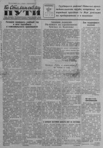 ч Пролетарии всех стран, соединяйтесь 1&СпШшин&Мц П У Т И Орган Северного РК Коммунистической партии Советского Союза и районного Совета депутатов трудящихся Новосибирск«й области ВОСКРЕСЕНЬЕ 19 АПРЕЛЯ 1953 г. № 33 (1538) Цена 10 коп. Трудящиеся района! Повысим производительность труда, встретим всенародный праздник 1-е Мая успехами на предприятиях и в колхозах. Успешно завершить учебный год в сети партийного и комсомольского просвещения Коммунистическая партия проявляет повседневную заботу о повышении идейно-политического уровня и деловой квалификации своих кадров. В районе создана широкая сеть партийно-комсомольского просвещения — кружков, политшкол, семинаров, которые призваны помочь нашим коммунистам, комсомольцам и беспартийному активу овладеть марксистско-ленинской теорией, обогатив себя историческим опытом партии. «Сила марксистско-ленинской теории, — учит товарищ Сталин, — состоит в том, что она даёт партии возможность ориентироваться в обстановке, понять внутреннюю связь ок- ( ружающпх событий, предвидеть ход событий, распознавать не только, как н куда развиваются события в настоящем, но и то, как и куда они должны развиваться в будущем». Поэтому изучение марксизма — ленинизма является насущной потребностью наших кадров. Ч)т того насколько глубоко Т полно они овладеют . революционной теорией, зависит решение главной задачи партии— построение коммунизма в нашей стране. Партийные организации района выполняя решения XIX съезда партии и указания Центрального Комитета, в нынешнем учебном году больше вникали в работу кружков и политшкол партийного и комсомольского просвещения, усилили контроль за политическим самообразованием коммунистов и качеством теоретической учёбы всех наших кадров партийных и беспартийных. В партийной организации Биазинского сельсовета работают кружки по изучению диалектического и исторического материализма и по изучению Краткого курса истории партии. Партийная организация постоянно интересуется как проходят занятия в этих кружках, насколько они помогают слушателям усваивать программный материал,какова посещаемость. Кружок, руководимый т. Архиповым закончил программу и 15 апреля проведены итоговые занятия. Слушатели показали хорошее усвоение изученного материала. Успешно работают кружки при Ново-Троицкой, Граждан- цевской и Останинской партийных организациях. Серьезно готовятся к итоговым собеседованиям комсомольцы Северного лесхоза (пропагандист т. Еряшкпна), колхоза «Заря коммунизма» (пропагандист т. Рогова), Биазинского маслозавода (пропагандист т. Марюхина). Но далеко не все парторганизации уделяли должно'1 внимание партийной пропаганде. Партбюро партийной организации колхоза «Путь Сталина» безответственно отнеслось к политической учёбе коммунистов. За весь год 1 изучена только половина программного материала. Недостаточно вникали в работу кружков секретари партийных организаций колхозов:«У крайней»-г т .Долен- чук, «Память Куйбыыева» — т. Ишонин. В результате бездеятельности секретарей, !бесконтрольности нх за хоЦрм учебы изучение программного материала сорвано. Наступает конец учебного года в сети партийного и комсомольского просвещения. Задача сейчас состоит в том, чтобы партийные и комсомольские организации организованно закончили занятия и показали значител
