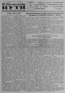 Пролетарии всех стран, соединяйтесь! 1й>СмаЛшик&Мц П Ж Н Г Ц Орган Северного РК Коммунистической партии СгвеиЛого Союза и районного Совета депутатов трудящихся НовосиТирской области Д ЕНЬ П Е Ч А Т И 5 мая-—традиционный праздник советской печати. Наша советская печать—самое сильное оружие, при помощикоторого партия ежедневно говорит с народом на своем, нужном ей языке. Советская печать несет в массы всепобеждающие идеи марксизма-ленинизма, воспитывает трудящихся в духе безграничной преданности социалистической Родине, мобилизует их на выполнение планов коммунистического строительства. В День печати редакции и читатели газет подытоижвают проделанную газетами работу, критически оценивают их дея- 14 дельность, намечают мерыпо их улучшению. Среид издающихся в стране газет большое место принадлежит районной печати.В каж- 1 дом районе Советского Союза ^ выходит печатная газета на , родномязыке населения, а в 1 районах со смешанным насе- | леннем-т~обычно две газеты. > Сейчас в СССР издается около , 4.500 районных газет—более половинывсех печатных газет , страны. Районная газета—это прежде всего газета самих рабочих и колхозников. Она призвана бытьтрибуной для выступлений колхозников, работников МТС и совхозов,рабочих предприятий, сельской интеллигенции, разносторонне освещать жизнь района, на конкретных и понятных фактах идейно воспитыватьнаселение, организовать трудящихся на решение стоящих перед районом задач. Местная печать многое делает для популяризации решений XIX съезда партии, для мобилизации трудящихся колхозной деревни на выполнение пятого пятилетнего плана в области сельского хозяйства. Но в работе местной печати имеются еще серьезные недостатки. Многие статьи и заметки пишутся на низком идейно-политическом и культурном уровне и не удовлетворяютвозросших запросовчитателей. Плохо освещается местная жизнь. Газета порой заполняется различными постановлениями, отчетами о собраниях и заседаниях, утрачивая тем самымлицо массовой колхозной газеты. Мало внимания и помощи оказывает районная печать стенным газетам в колхозах, МТС, совхозах, на промышленных предприятиях. Районная печать руководствуется политикой,выработанной Коммунистической партией и Советскимправительством. Партияпоставила задачу—неустанно укреплять наше великое социалистическое государство, единство и дружбу народов Советской страны, обеспечивать дальнейший расцвет нашей Родины, всемерно развивать социалистическую промышленность, укреплять колхозный строй, добиваться дальнейшего иоцьема и процветания всех колхозов страны, крепить союз рабочего класса н колхозного крестьянства. Главная забота партии и правительства в области внутренней политики состоит в том,чтобы неуклонно добиваться дальнейшего, улучшения материального благосостояния рабочих, колхозников, пнтел- лпгепцпп, всех ¡шветских людей. Партия и правительство неослабно заботится о благе народа, о максимальном удовлетворении его материальных п культурных потребностей. Главная забота нашей партии в области внешней политикисостоит в том, чтобы не допустить новой войны, жить в мире со всеми странами.Наш долг—хранить и укреплять величайшее завоевание народов—лагерь мира, демократии и социализма, креппть узы дружбы п солидарности народов стран демократического лагеря.
