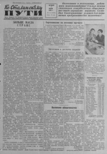 Пролетарии всех стран, соединяйтесь! ШСшМишс&Ми П У Т И Орган Северного РК Коммунистической партии Советского Союза и районного Совета депутатов трудящихся Новосибирской области БОЛЬШЕ МАСЛА С Т Р А Н Е Воодушевленный решенпямп XIX съезда Коммунистической п п ч а и е р с л т к и и в и х 1 с с 9 о и 5 в л 3 е , тс г с к од ий не п п о п о л а к н р о о ы л д й еби в т м с в т о о у й р решимостью добиться новых у н р с и о п д и е н х о п о г я о в то х в г о о з р я а п й з я в с т и т и т в л и а е и , тн в е в г с в о е ы г п п о л о а л н н н а е а . Работники молочной мышленности также вно п с р я о т свой вклад в общее дело строения коммунизма, вая свою роль в дальне с й о ш зн п е а м о повышении материального благосостояния трудящихся нашей страны. Они ежегодно д бо о т б к и и вают м с о я ло у ч в н е ы ли х чени п я роду в к ы т р о а в , улучшая их качество. В первомайских Призывах Центральный Комитет нашей к с п и т а а в м р о п т р и п и и и и з в щ р о а е а л б в с р о ш а и й щ и х р а я п л т р с у ь о я л м у ы ч а к с ш ш с а о л т р р е ь т н а и б н о м о к т с е а н т н ч и и т е товаров массового потребления, бороться за экономию сырья, за снижение себестоимости т т п у у р р щ о н В д и ы у е е к о ц т м в п и а е о и т т т , е р р н е и у б а д а н л о о в ь с п л н т р е ы и и т е в зы о н р в и а я р ть од р к а о р у . д а л н с ь ой п го арти м и ас р л а о б з о ав тн од и а ки (д Ф и е р д е о к р т о ор вскот. Столетов, председатель мест-, кома т. -Литвинов) прекрасно трудятся и по праву занимают п з с а к е в о р о м в д о о е с в ор м е е в с р н т а о о й в о а н в н а и . и со ср ц В е и ы д а п и л о и м л с а н т с е и л н ч о и е е полугодового плана по сбору молока здесь обеспечено на 142,5 процента, б П о р т о к т и ив ма п с р л о а ш — ло н г а о 1 г 0 о п 3 д л а п ан р п о р ц и е в р н ы о т с а р т , а по выработке масла составляет 119 процентов. Коллектив т г П з о о а о р в т ы о о и д в е т а к о у г у а с и м пе п ш е с н р о е о р р е а в б н п о о р т в о к а в у н о и д м я и о , т лок к з а а о . подводятся в конце каждого квартала, скому маслозаводу но переходящее Красн п о р е Ф и ё с з д у н ж о а р м д о е я в раймаслопрома и райгруппкома. И они решплп не отдавать его до конца года. Прибелпнский маслозавод ( т н м е и л а м ь с а т е е м т р ес в т т к т о о . р м ое а Гл м е т. б ес о т И в о , вон п и в р и е ) с д о с р е е з д в а а новании. По сбору молока план выполнен на 125проц. Но не выполнен план выработки масла. Не додано 16 центнеров. Количество тельное п воз с м о о в ж се н м ости незн бы ач л и и к тому, чтобы намного к ш р е ы м ть пр э п т б у ел ц и и н ф цы ру. у В чту д т ал т ь п а н к е е о р й й е недостаток п напрягая своп сплы, выйдут в дов Х ы о х р . ошо потрудил ч и и с с ь ло в п п е е р р е щ во и м е по с л л у и г в о к д о и о и тде т л а е к н и п е ям з и а , веду к ю ак Е. А. Иванова (деревня Але- шиыка), выполнившая годовой в п и ла д н уал п ь о н с ы та х во с к да м тч о и л к о о к в а о н т а и 9 н 1 ди и от колхозов—на 61 процент. в ч О о е н й н а ие вз п и я л ю л а а н ля обя п з з а о а в с т е т е р а л ш в ь о и с к т т в ь о мо в г л о о д т к о е а ; Е. Дпкова (поселок Степипск), М. Бухтиярова (досиня Еоль- в ш о п й е- п К л у а л н нк п п о ) ст в а ы во п к олн м и о л л и ока год н оа 81—78 процентов. Но следует сказать, что не р к н е з т а е а о т ж й с у в д я с ы ы п п р п й в е о о х г л п м р н о а д а е л с м е н н л л м и у о а ю е ы з , а . в н м о п е Т д е р о р о к л о у и а ь б з ж с к е в в с о д о п о ы д е и с й п ч х т а и в с в е и б а 7 н л о 4 процента заготовлено молока и па 56 п