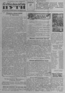 ПролетаршГвсех стран, соединяйтесь! П У Т И Орган Северного РК Коммунистической партии Советского Союза и районного Совета депутатов трудящихся Новосибирской области ВОСКРЕСЕНЬЕ 26 ИЮЛЯ 1953 г. № 60 (1565) Цена 10 коп. Основная задача советской торговли—обеспечивать постоянно растущие потребности трудящихся нашей страны, содействовать повышению жизненного уровня масс. И/о Изжи гь кедос ! атки в торговле Из года в год в нашей стране увеличивается производство продовольственных п промышленных товаров^ Па базе непрерывного роста социалистического производства п подъёма материального благосостояния трудящихся расширяется советская торговля. Претворяются в жизнь решения XIX съезда партии об удовлетворении культурных запросов нашего народа. За последнее время потребительская кооперация района заметно увеличила завоз товаров п расширила ассортимент. Выполнение полугодового плана товарооборота составило 102,5 процента. Некоторые работники прилавка добились хороших показателей. На 149 процентов выполнен план второго‘квартала продавцом Бпа- зпнекого сельпо т. Терентьевой. Прочно удерживает звание лучшего продавца т. Алехина (райцентр), значительно улучшил руководство организацией торговли председатель Ново- Елпзаровекого сельпо т. Гизатулин. В результате перестройки работы ликвидированы перебои ’в торговле товарами первой необходимости! В первом полугодии план товарооборота но сельпо перевыполнен почти на 18 процентов. Сейчас наша задача поднять всех работников торговли на дальнейшее развертывание товарооборота, улучшение обслуживания населения, за высокую культуру продавцов. Но надо признать,что несмотря на достигнутые успехи в торговле, мы далеко еще не справились с поставленными задачами. Ряд магазинов и ларьков плохо оборудованы и иногда допускают перебой в торговле такими товарами, как соль, известь и другие (Ново- —Троицкое, Северное н Верх- Красноярское ведьпо). Нетерпимыми остаются факты нарушения правил советской торговли. Отдельные руководящие торговые работники и продавцы продолжают допускать продажу товаров, пользующихся большим спросом населения, в первую очередь своим друзьям и знакомым. Так,21 июля по разрешению т. Березовской были проданы некоторые дефицитные товары работникам конторы райпотребсоюза и раймага. В тот же день недопустимое нарушение принципа советской торговли допустила только что вернувшаяся с курсов заведующая торговым отделом райисполкома т.Никитина. Пользуясь служебным положением, она после закрытия магазина взяла ряд товаров. Вместо должного- с еУ Стороны контроля за правильностью торговли, зав. торготделом сама толкает продавцов на преступления. Все эти и другие факты нарушения правил советской торговли имеют место потому, что правление райпотребсоюза п его председатель т. Большаков, а также правления сельпо не осуществляют должного контроля за работой подведомственных им торговых организаций. Слабо поставлена работа по подбору- и воспитанию кадров. До сих пор не изжиты случаи растрат и хищений материальных ценностей. Слабо’выполняет свои обязанности в деле контроля за работой продавцов наша общественность. Члены лавочных и ревизионных комиссий забывают о своем долге. Редко появляются они в магазинах п ларьках, не выступают и с критикой в печати. В конце июля намечаетс