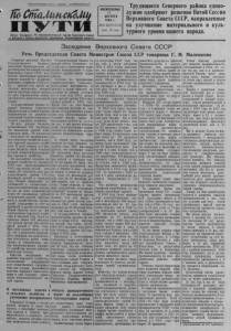 Пролетарии всех стран, соединяйтесь! ШСшишмх&Мц П У Т И Орган Северного РК Коммунистической партии Советского Союза и районного Совета депутатов трудящихся Новосибирской области ВОСКРЕСЕНЬЕ I 16 АВГУСТА | 1953 г. №65-66(1570-71)! Цена 20 коп. | Трудящиеся Северного района единодушно одобряют решения ПятойСессии Верховного Совета СССР, направленные на улучшение материального и культурного уровня нашего народа. Заседание Верховного Совета СССР Речь Председателя Совета Министров Союза ССР товарища Г. М. Маленкова Товаршцп депутаты! Проект Государственного бюджета, внесенный Правительством на рассмотрение настоящей сессни В р н о е о в р с а т х н ь о и ю в е но о з г б а о е д с а п С н е о и ч в й и ет в п а а о ет СС ф р С а и Р з н в , а и н т п с и о и ю л н д ти у ар л о е —д т н к о и г т , о ре в т х ы ь о е п з м о я л й н г с о е т н в д а и у е в пя 1 т к 9 о о 5 й т 3 ор г п о о й я явится крупным шагом вперед с н и т и р о с Г а т п н о и у с е т ч у . и е д с а к р с о с т г т р о в о е и о н т б н е щ ы л е ь й с с т т в в б а а ю в дж к н о е а т м ш м е о й у т ражает политику Советского Правительства и нашей партии, направленную на развитие и н че у с к к И л о з о г н о н в ы с н е й х аро п д о д н д о ъ о х г е о о м до х с в о оц зя и й а б с л ю т и д в с ж а т . е и т а, составляющих 543 миллиарда 3 в 5 л 7 яю м щ и а л я ли ч о а н с о т в ь— р 8 у 6 бл п е р й о , це п н о т д о а в с с г — т т и в и х п а , о . с с о е т В т л у р ь п а с с с а в к л е о о е т ю й г о о н т о х а ч о р е п з о р я д р е й н о д с м о ь т г ы в о и ш а х л и в о ен д з р я р н а й у о с ходах бюджета самой большой р н ст о и а д е т Н н ь о а н е г а й о д р а о х л д я о н ь в з н о л я г е я й о й е с ш т т х с е в я о е а з ф я р п и й а о н с з т а в в н б и а с ю т . и и д р е ж о е в т н а у а 1953 года предусматривается 192,5 миллиарда рублей, или х с о в д ы о ш в е бю 36 дже п т р а оцен п т р о о в ти в в сех 17 р 8 а , с 8 миллиарда рублей в прошлом г с о и д г у н . ов П а о н м и и й м , о в бю с д о ж от е в т е н т ы ст х вии ас с народнохозяйственным планом, на эти же цели направляется почти 98 миллиардов рублей с я з о т а б и ц с й и т й в , и ен о н х б о ы р з х а я з й у с с е р т м е в д ы е с н х т н в ы з х а пр с о ч е р е д г т п ан р и и и х прибылей и других источников. с Т н т а а в к н а и си м в ро о т в б е а р к н а у и з щ е о е м н м , ар в г о о с д е д н г у о о го б п у х д а о ет зя н ф й а и а п д р о р д в а о в в л р е у н б о л р е у й с б в л ы е п й ш ро е т в и 2 в 90 1 2 9 6 5 5 м 2 и м л и л л г и о л а д и р у. д н П у о р , г и о ч с э т н т о о и м ж в е с р н л е и е з я д у у л ц е ь е т т н а и т п м е о е к п т у р ь п о а в т в е е д л е в ь н и ная способность рубля м си ер лас ф ь и , на и н , си с р л о ед в о а в н а и т я ель н н а о р , о п д о р н в а о ы з в го ае С т х р с о я е з д я с е й т щ с в е т а в , а бол р в ь е ы ш а д л е е ь . л н е о нн у ы ве е личина развитие народного хозяйства, обеспечивают непрерывный р ст о в с а т к о а б к ще о ст сн в о ен вы ного дал п ь р н о е и й з ш в е о г д о я л п ш е н о е н д и й и ъ я я е с м и т а о р б а е о н н щ р а ы о р е . н о о д б с н о п о л о г ь с о ш об б е н г л о о а с г т о и с у о к с р т н е о а п О неотложных задачах в и сельского хозяйства и улучшению материально! дени Т е о м вари б щюд и ж ! ет В а св я язи хо с те о л бсу б ж ы м з с н я к ы ы й а ш х з с а т л т в з е ь а а н , д н а о о р ч с е т а ш н и х е е к н и в о и т е с о е р о к л ы б о ь л х т с а о к с р о н т ы г е и о х отл д о а п х с ж р о т о нам возможность более успешт с ш р у у а е д р ж н Г н а а и о р о е и с с г т у т о д в м з а а а а у р б т р с о о е т о т 