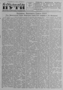 Пролетарии всех стран, соединяйтесь! 1й>СшсПинс^Ми П У Т И Орган Северного РК Коммунистической партии Советского Союза и районного Совета депутатов трудящихся Новосибирской области ЧЕТВЕРГ 20 АВГУСТА 1953 г. №67-08(1572-73) Цена 20 коп. Бодрость и уверенность вселяет в каждого из нас монолитное единство советского народа, его величайшая сплочённость вокруг родной Коммунистической партии и Советского Правительства. (Из речи товарища Г. М. Маленкова на пятой сессии Верховного Совета СССР) . 1 Заседание Верховного Совета СССР Речь Председателя Совета Министров Союза ССР товарища Г. М. Маленкова (Продолжение) чест Д в о е гово н р о вз д а р и у м ж н б о е й , со п тр ом уд о н щ и и между Советским Союзом и Финляндией отвечает интересам обеих стран и способствует у ст к и реп в ле с н ев и е ю рно м й ира ча и сти без Е о в п р а о с п н ы о. Д в се о о д й го ск в д о и л р х я с о н л т а у н л ж о а и шж т е и н в х и а о н й р и . о я ш Н е е д й о о б б х о р о с о д н с и о омо его неуклонное проведение в с в т и в ж т о е и м л з ь н с Ф ь т и в н н о е л м я , т н о д н л и о ь и к и . о на П ш р и а м вит П е р л а ь Стремясь ослабить общую н ви ап те р л я ь ж с е т н во нос д т а ь л , о Сов со ет г с л к а о с е ие Пра н а восстановление с в к ом их И о з т р н а о и ш ль е . ни О й но д с п и р п г и л о н о с м я у л а д о т а и р ч с в е т о с в т н в и о ма П н р и а е ви п т р е и льс э т т в о а м И о з б р я а з и а л т ь ель о том, что «Израиль не будет участником какого-либо союза и го ли аг с р о е г с л с а и ш вн е ы ни е я, п ц р е е л с и леду п ю ро щ т е и в п г С а л о е о в м м е , т а с т к ч и о т ч г о е о ск в и С о х о сс ю т о з а т а н н » о о . в ш л М е е н н ы и и й е по б д л у и а дет способствовать ч ст е в ст а в м у и. между обеими со г т о р су уд д н ар и с н т о р в а З л н а е я н н в и ы л е х ен д г и и а я п з л ет о , м н а е б т к у и о д ч т т е о о с р к ы и в х х осс и о т н т а о ношений с Израилем приведет к с с к у о д о с г а л о р а с б т л С в е о а н ю м и з и ю а , о с л т и н ш а о р ш е а н е б ы н с и к й им о С и с о н в о е в т г а о ний. Деятельность Светского Правительства п в дальнейшем будет направлена па укрепление дружественного сотрудничества с арабскими государствами. л п о осл Н и е а н ш иц е и д П л ат и р и т а е в в л и у ь т н е в о л г ь д о с е т л в е о пе п р о р е б р о м ы я е в н в и а а п ц о и с е л й а . ми М с ы Юг р о а с с л с а ч в и и т е ы й ва и ем, Г ч р т е о с л э щ т е е з о о й н б ы е п и н е р м о и и р р в м е е д з а ст е у л т р л и а ь з н т а к а ц а м т и ы и и с . оо и о т т в д н е а о т с ш с т т е в н у и п ю й о Нет никаких объективных м пр еш ич а и т н ь , у к л о у т ч о ш ры ен е ию мог о л т и но б ше ы н п и о й между Советским Союзом и г н И у и т т я али к е м р й е е . ж пн д Р у у а т з ь г у , о м с е у е е с д т л а с и р я с , тв в а з о а м т и н и м о н ш м ы е о е обязательства, принятые ими на себя, выполняются. При б ск л о аг -и оп т р ал и ь ят я н н о с м ких развит о и т и но с ш о е в н ет и й ж пр и о в м а ы ю ш щ л а е я нн б о о ст л ь ьш И и т е ал т и р и уд , н п ос е т р и е , м н н о о у м г ю л и а ч о е п с б к ы о и р х у по с в л в у я у ч з л и е у й т ч ь ш м е з е н н ж и а д и ч у ите э л н к ь а о в ч ш н е е и и н я м а и в И з у а т г г и а о л м л с е о у и м в д я ы ар и г б о с ы т д х л в н л а а о е м г б о и о бы м . , Н со а а о г б л т о е а а с с ш к н п ж о е е е м я н с з т н а ы о и к с г х л к . а о о з у а г Н с м о е б л и с ы о о н в д м а и л у р н й я л о е у д н ч е а н с е . ш л о а , е п в ( н р н А ч и о о т п ю м г о л о ы о э ш д ж т и л и и о с е з т м н н а н е е л п н о н ь о 